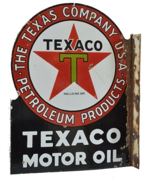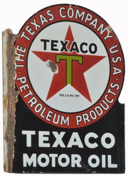 Lot 81 Black T Texaco Motor Oil D/S Flange Porcelain Sign