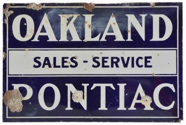 Lot 93 Oakland Pontiac Sales - Sevrvice Porclain Sign