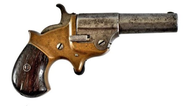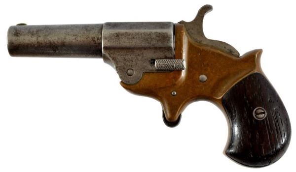 Mfd 1870. Brass frame with birds head grip. Walnut grips. Rim fired, with iron barrel.