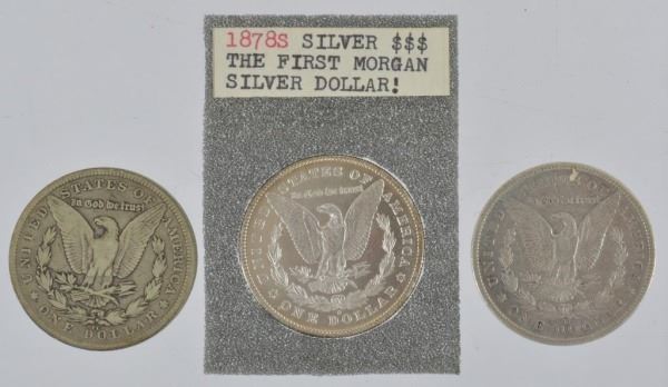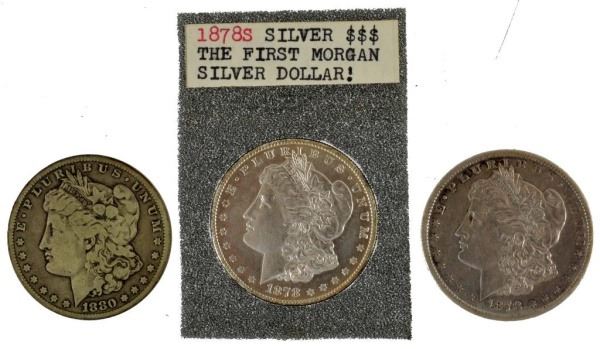 1878S (The first Morgan silver dollar), 1878 and 1880. 2 of them marked Carson City