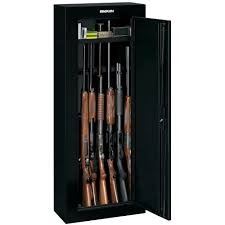 Your guns and valuables can be safely locked away in a Stack-On Gun Cabinet. The molded barrel rest enables you to secure up to eight rifles and shotguns. A removable shelf is included to hold accessories. A superior, three-point, double-bitted, key-coded lock secures the unit. The door uses a full-length welded and staked piano hinge. The exterior has a durable, black gloss paint finish. Fastening hardware and pre-drilled holes facilitate mounting. Foam-padded bottom.