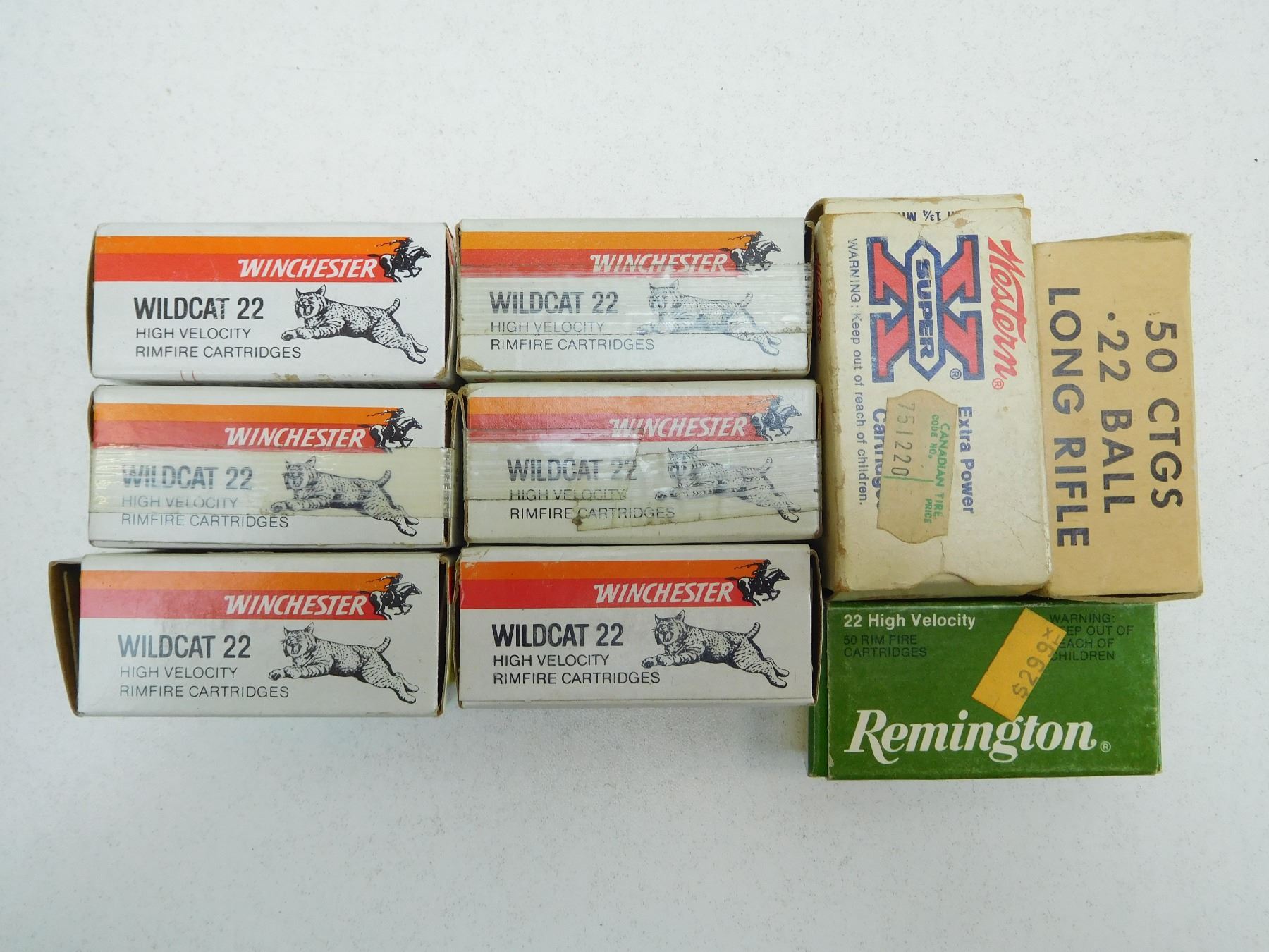 APPROX. 366 RNDS INCLUDES SOME SEALED WINCHESTER WILDCAT 22, REMINGTON 22 SHORT, WESTERN 22 MAGNUM
