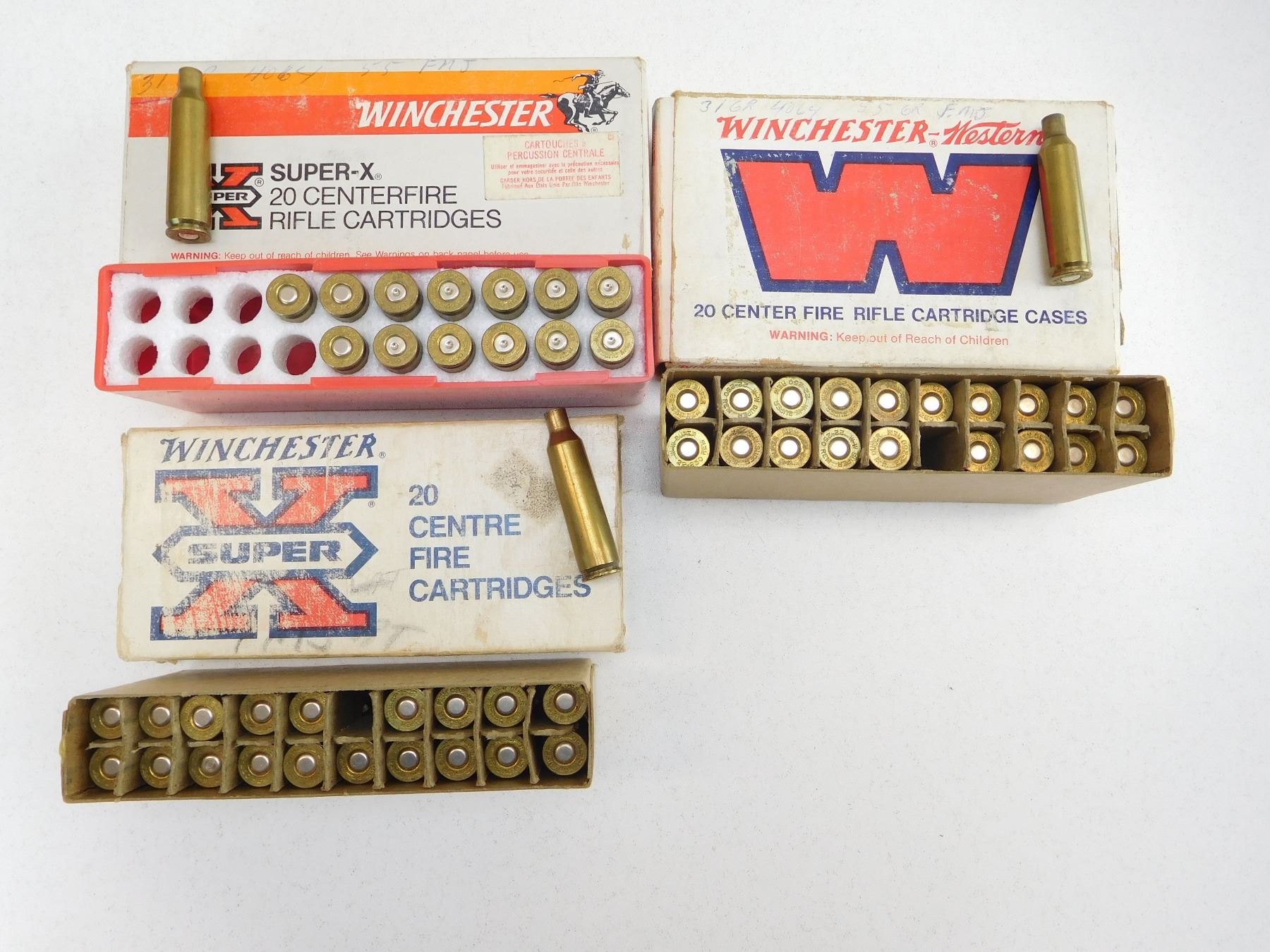 54 PCS TOTAL: 44 PRIMED BRASS, 10 UNRPIMED BRASS