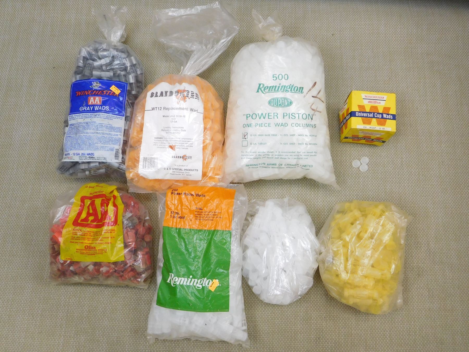 APPROX. 4 KG MOSTLY 12 GA WADS, (1) BOX UNIVERSAL CUP WADS, SEE PHOTO