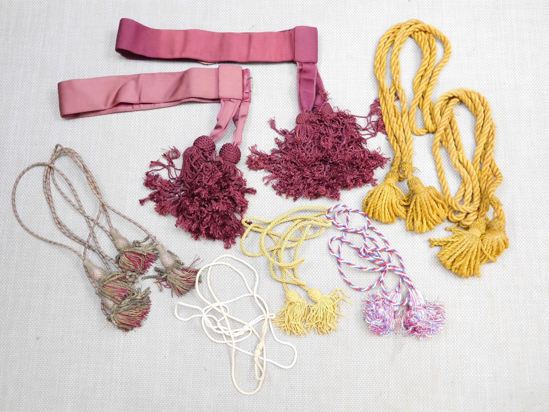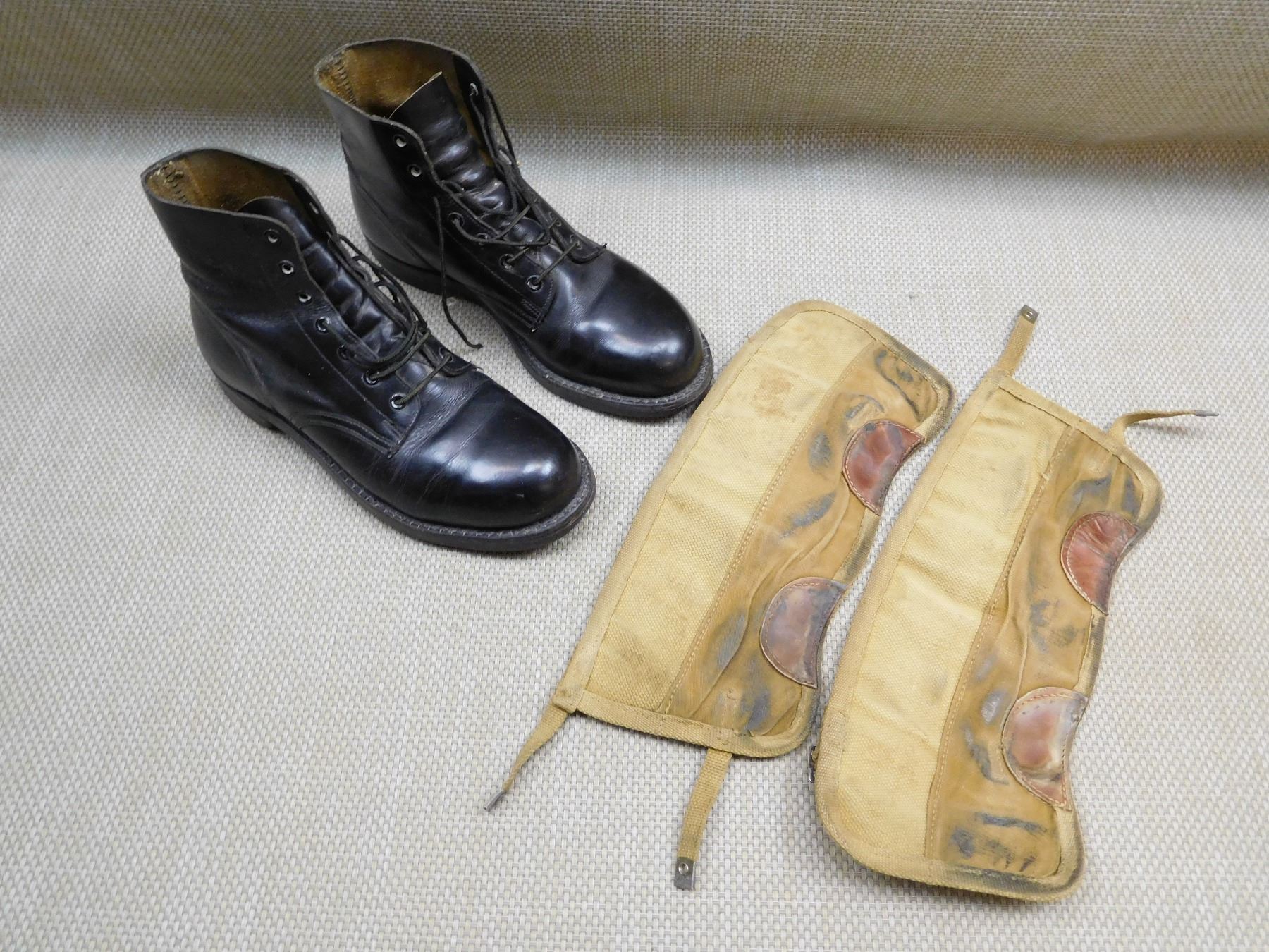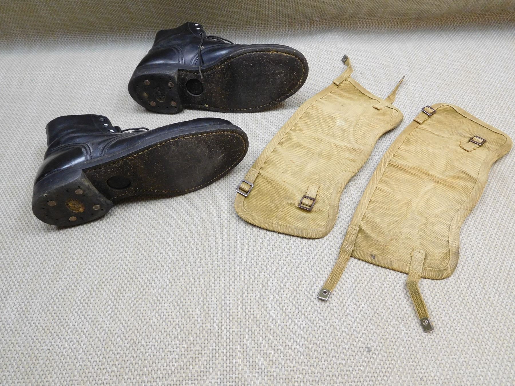 (2) MAROON DRESS BELTS, (5) ASSORTED BRAIDS, (1) PAIR BLACK BOOTS STAMPED 1977, SIZE 8 1/2, BILTRITE ON BOTTOM, (1) PAIR OF ANKLE GATERS