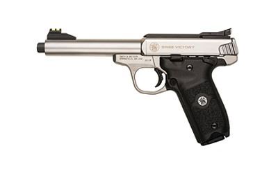 Smith & Wesson, Victory, Semi-Automatic, 22LR, 5.5" Barrel, Stainless Frame, Stainless Finish, Polymer Grips, Threaded Barrel, Adjustable Rear, Fiber Optic Front Sight, 10 Rounds, 2 Magazines