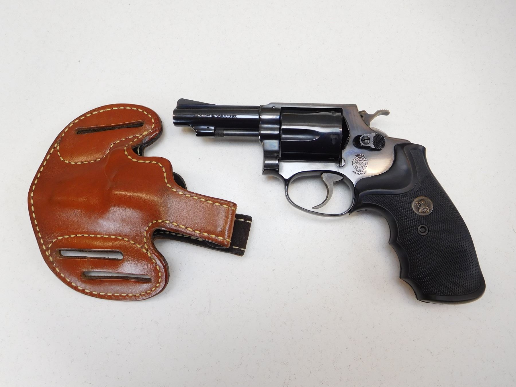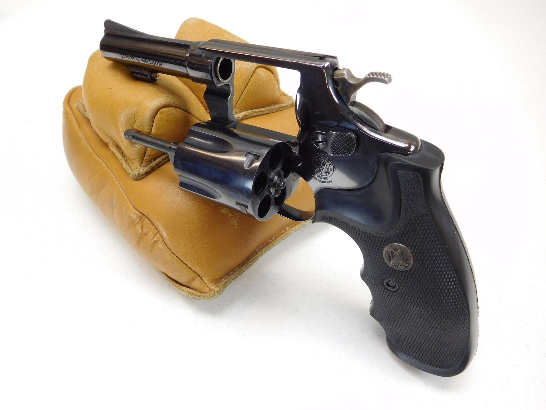 COMES WITH SMALL LEATHER HOLSTER, 5 SHOT CAPACITY, BORE IS EXCELLENT, NOTCH AND BLADE SIGHT, DOUBLE ACTION, PACHMAYR TARGET GRIPS , ACTION: REVOLVER , BARREL LENGTH: 76MM , STOCK # P1917 , SERIAL # 942J21 , CONDITION: 9/10 , CLASS: CANADIAN PROHIBITED CLASS