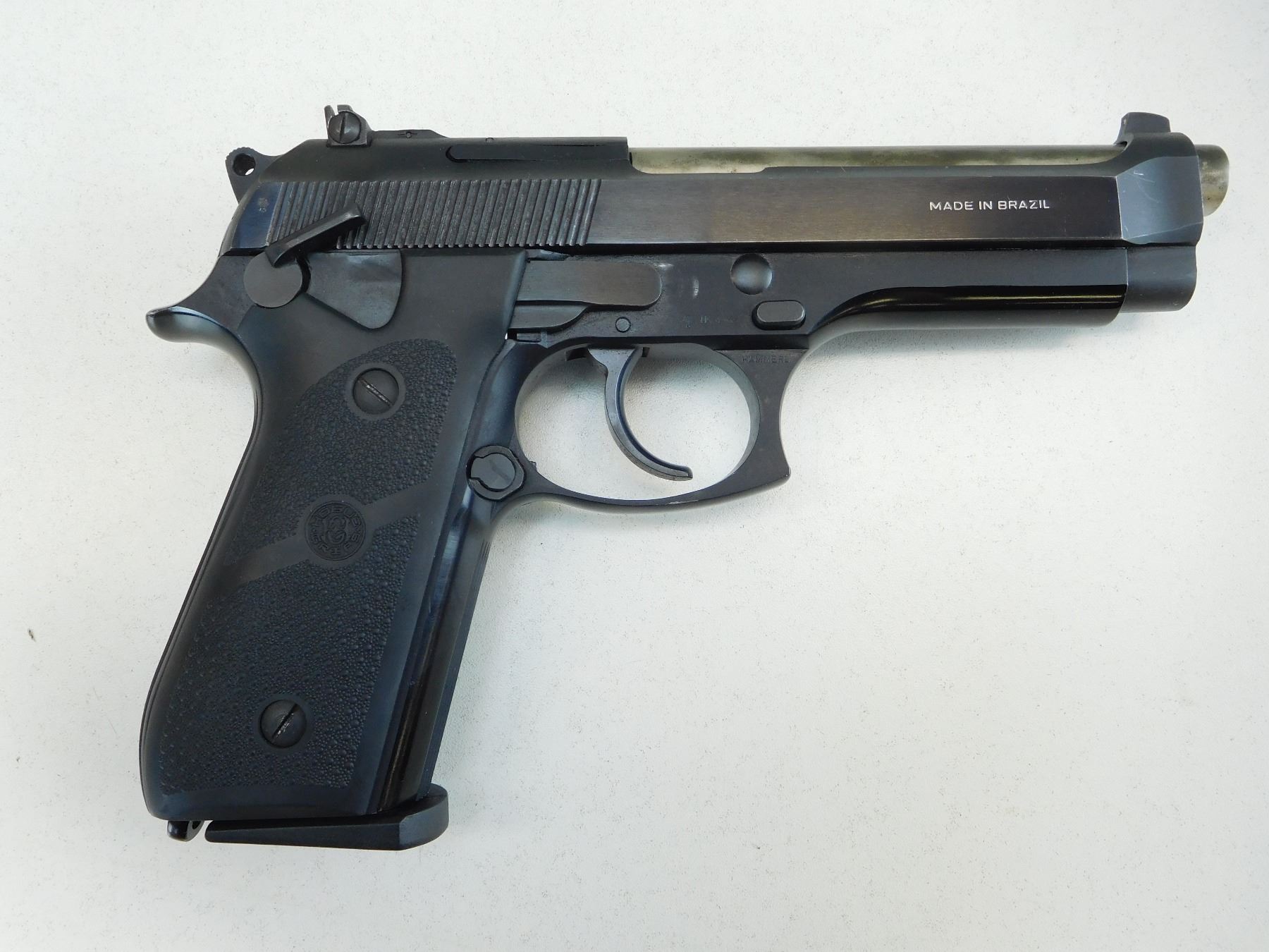 COMES WITH MAGAZINE, STIPPLED RUBBER GRIPS, WHITE DOT FRONT AND FULLY ADJUSTABLE FOR WINDAGE AND ELEVATION REAR SIGHT, BARREL SHOW SOME EXTERNAL PITTING,VERY GOOD BORE, SLIDE LOCK SAFETY, LANYARD LOOP , ACTION: SEMIAUTOMATIC HANDGUN , BARREL LENGTH: 123MM , STOCK # R2493 , SERIAL # RIA66716 , CONDITION: 6/10 , CLASS: CANADIAN RESTRICTED CLASS