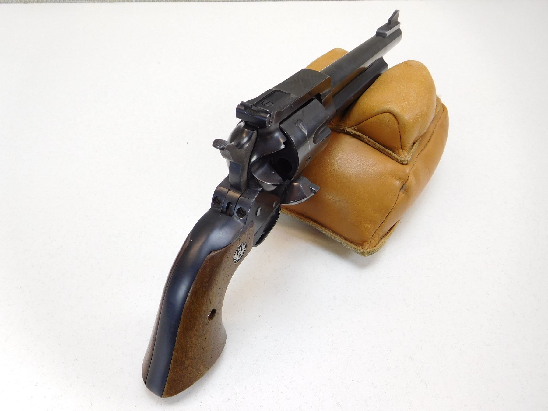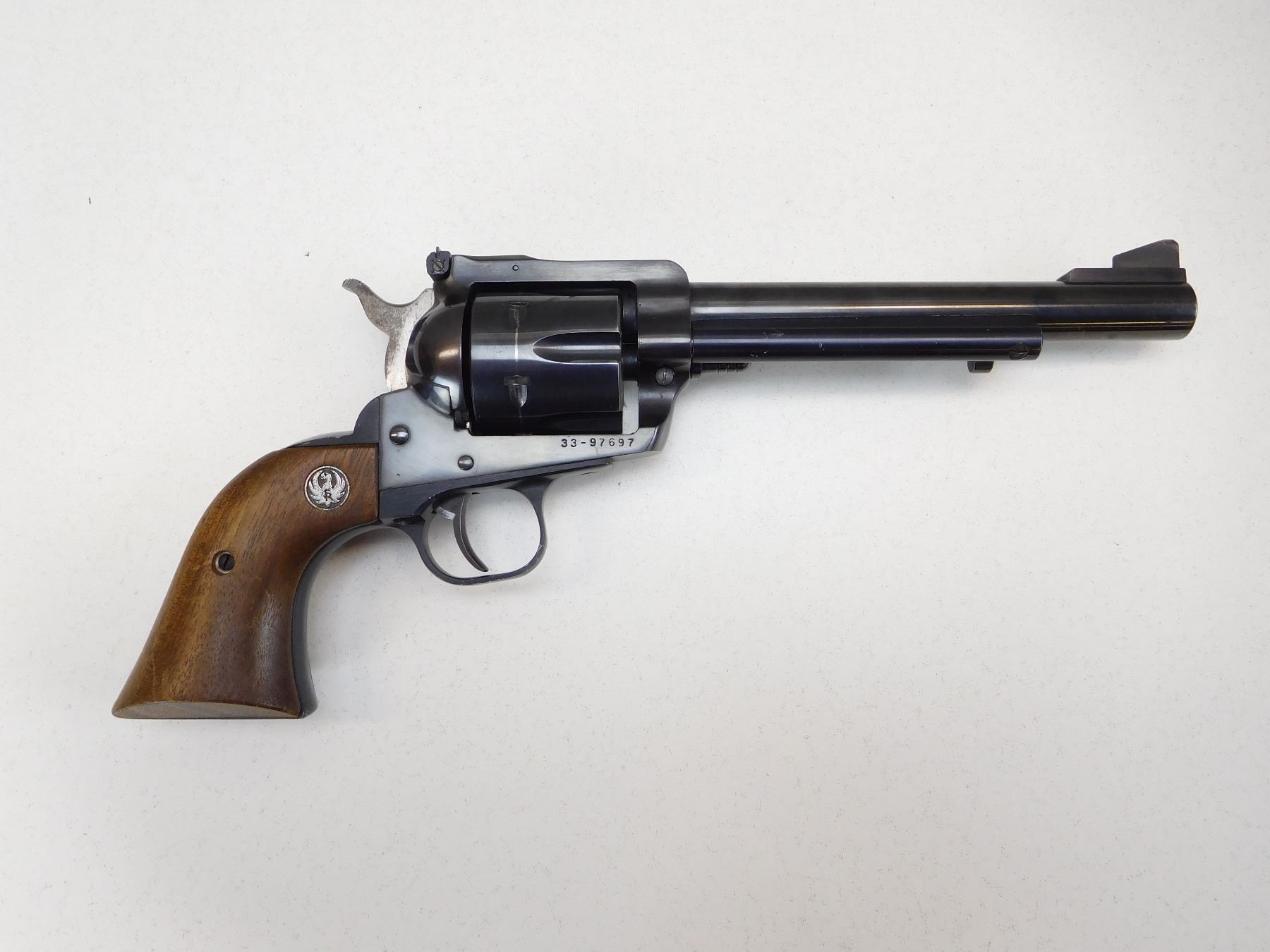 RAISED RAMP FRONT AND ADJUSTABLE REAR SIGHT, ORIGINAL RUGER HARDWOOD GRIPS, BORE IS VERY GOOD , ACTION: REVOLVER , BARREL LENGTH: 165MM , STOCK # R2532 , SERIAL # 3397697 , CONDITION: 8/10 , CLASS: CANADIAN RESTRICTED CLASS