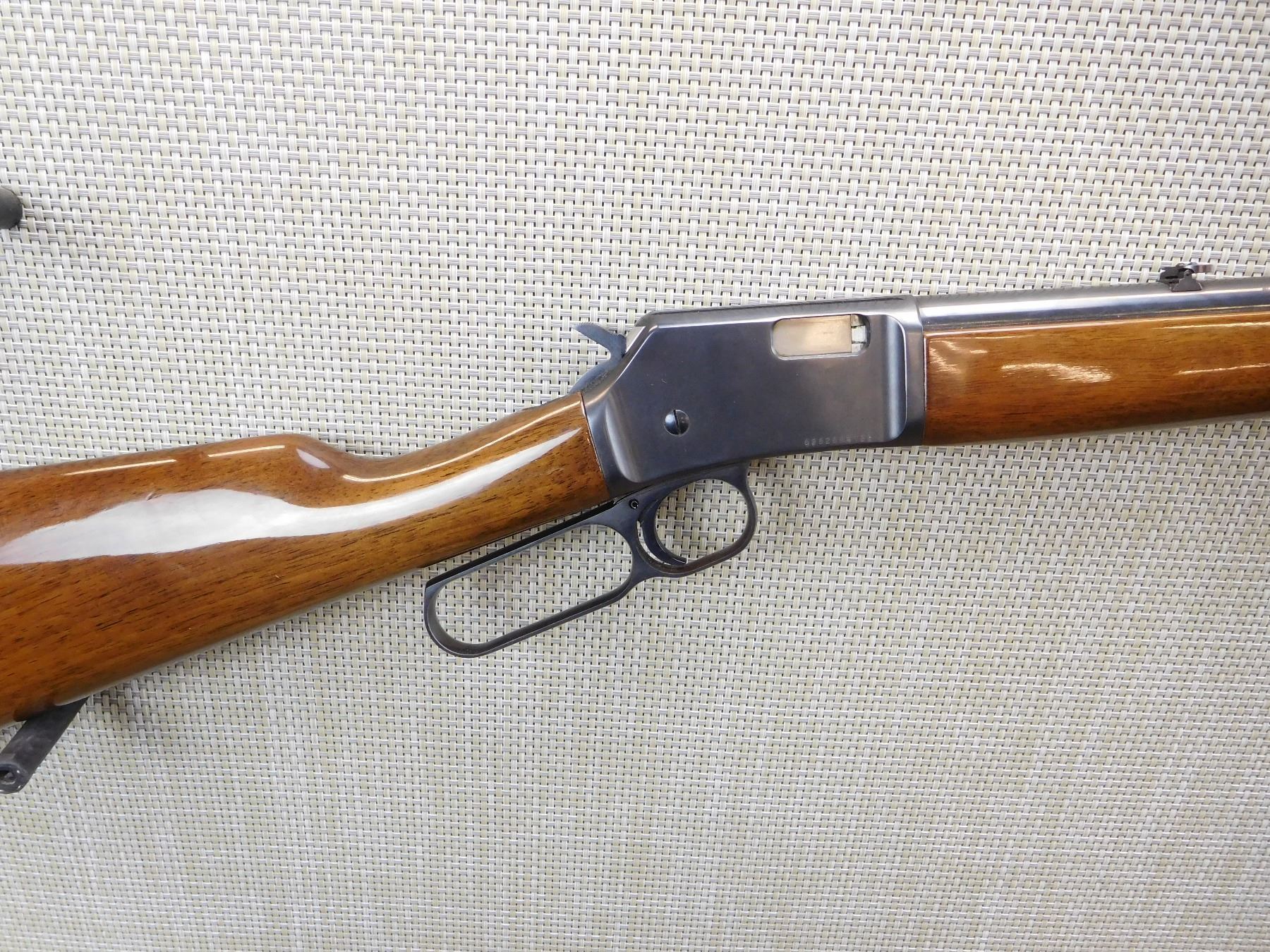 RAMP FRONT AND FLIP ADJUSTABLE REAR SIGHT, BORE IS EXCELLENT, SHOWS VERY LITTLE USE, HARD RUBBER BUTT PLATE , ACTION: LEVER ACTION RIFLE , BARREL LENGTH: 20" , STOCK # 7113 , SERIAL # 02526RR126 , CONDITION: 9/10 , CLASS: CANADIAN NON RESTRICTED CLASS