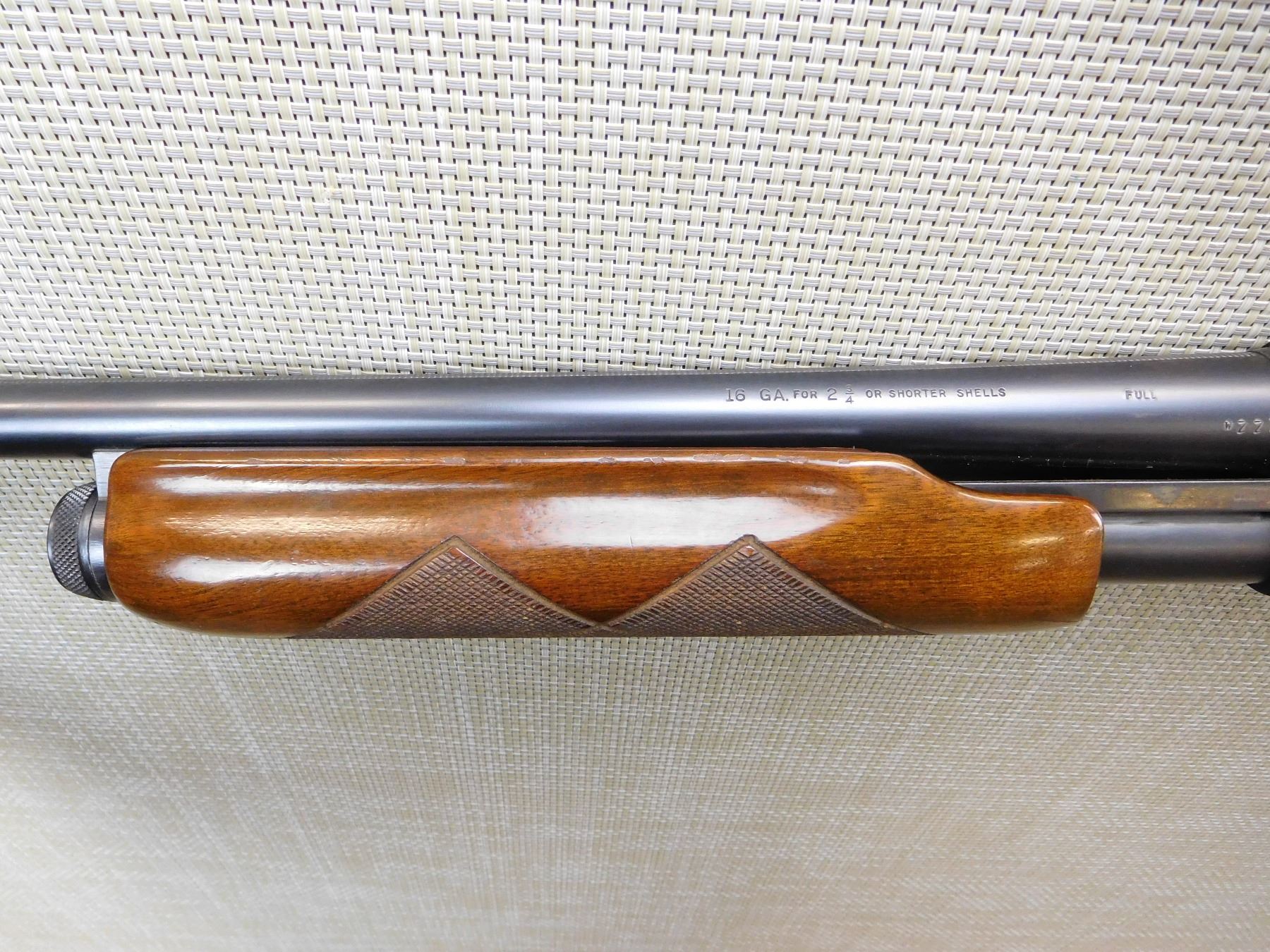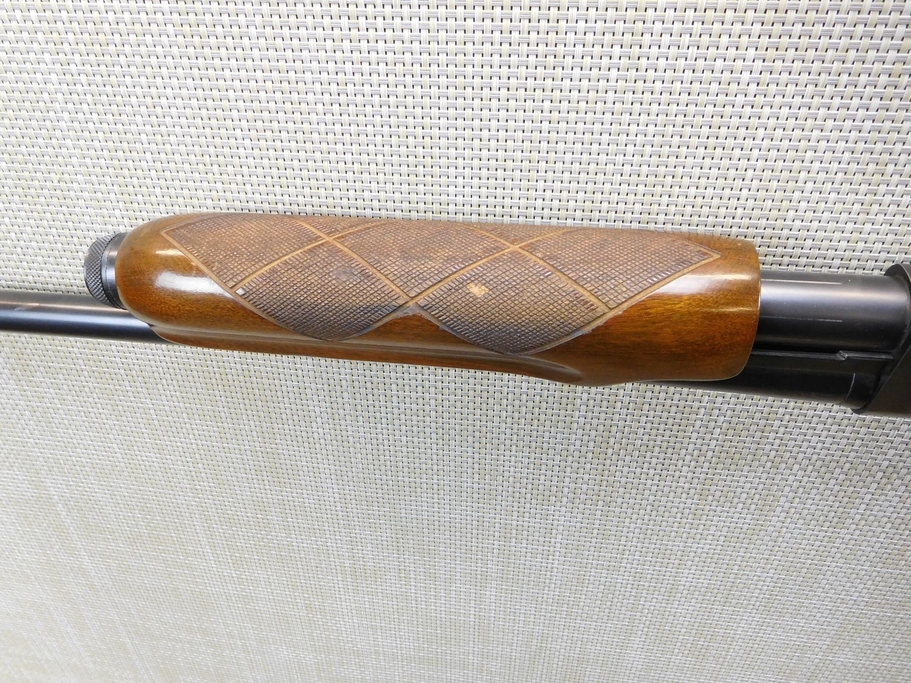 FULL CHOKE BARREL, CHECKERED FOREND, WITH CAPPED PISTOL GRIP STOCK AND HARD RUBBER BUTT PLATE, BORE IS EXCELLENT, BEAD FRONT SIGHT , ACTION: PUMP ACTION SHOTGUN , BARREL LENGTH: 28" , STOCK # 7117 , SERIAL # 270983W , CONDITION: 8/10 , CLASS: CANADIAN NON RESTRICTED CLASS