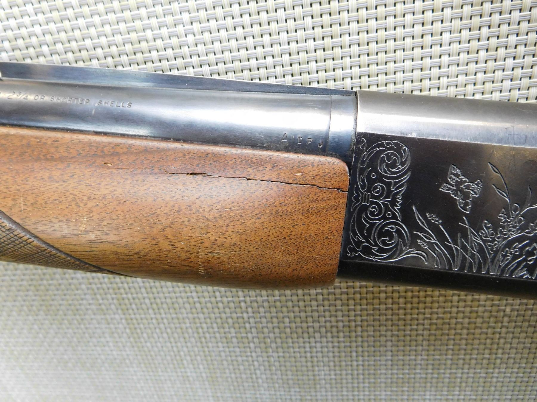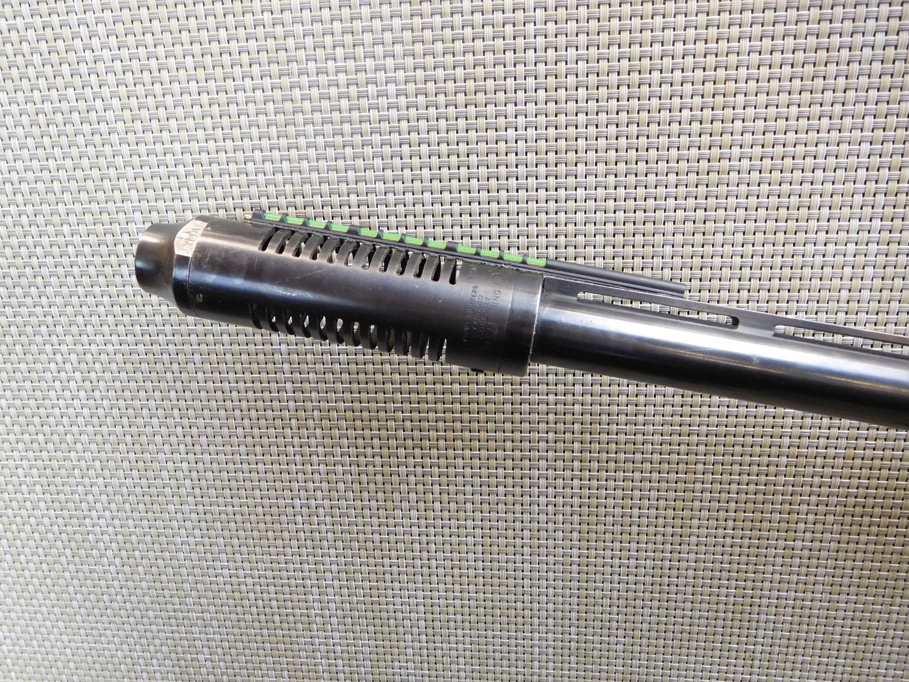LYMAN MUZZLE BREAK WITH FIBER OPTIC FRONT SIGHT, VENTED RIB BARREL, CHECKERED FOREND AND CAPPED PISTOL GRIP BUTT STOCK, BORE IS VERY GOOD, CRACKED FOREND , ACTION: SEMIAUTOMATIC SHOT , BARREL LENGTH: 22" , STOCK # 7207 , SERIAL # 163668V , CONDITION: 6/10 , CLASS: CANADIAN NON RESTRICTED CLASS