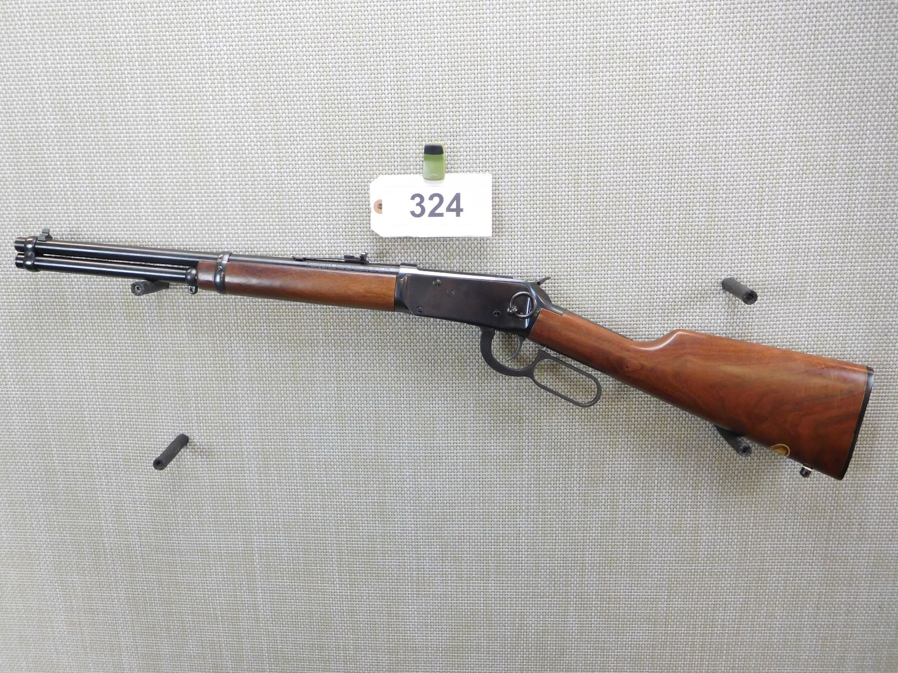 SADDLE RING CARBINE, SLING SWIVEL STUDS, BORE IS EXCELLENT, WALNUT STOCK, DOVETAIL FRONT AND FULLY ADJUSTABLE BUCKHORN REAR SIGHT , ACTION: LEVER ACTION RIFLE , BARREL LENGTH: 16" , STOCK # 7216 , SERIAL # 5527745 , CONDITION: 9/10 , CLASS: CANADIAN NON RESTRICTED CLASS