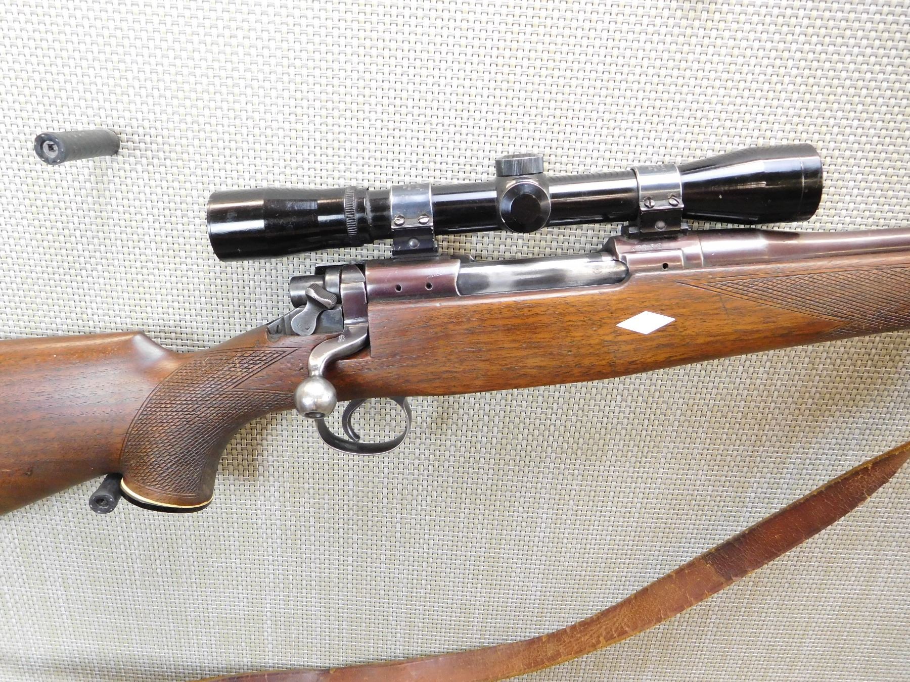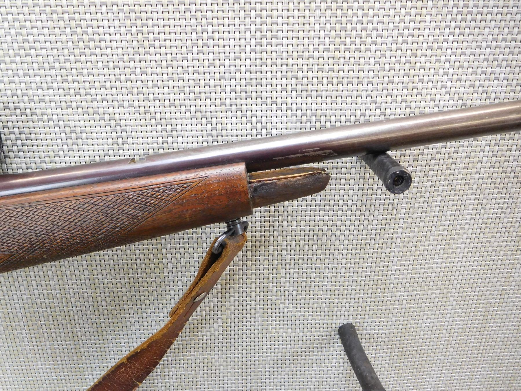 WEAVER SPORTVIEW SCOPE, SLING SWIVELS AND LEATHER SLING, MISSING THE FRONT DOVETAIL SIGHT AND REAR DOVETAIL SIGHTS, MISSING THE FOREND CAP,FULL CAPPED PISTOL GRIP, BORE IS FROSTY , ACTION: BOLT ACTION RIFLE , BARREL LENGTH: 24" , STOCK # 7264 , SERIAL # M3653 , CONDITION: 3/10 , CLASS: CANADIAN NON RESTRICTED CLASS