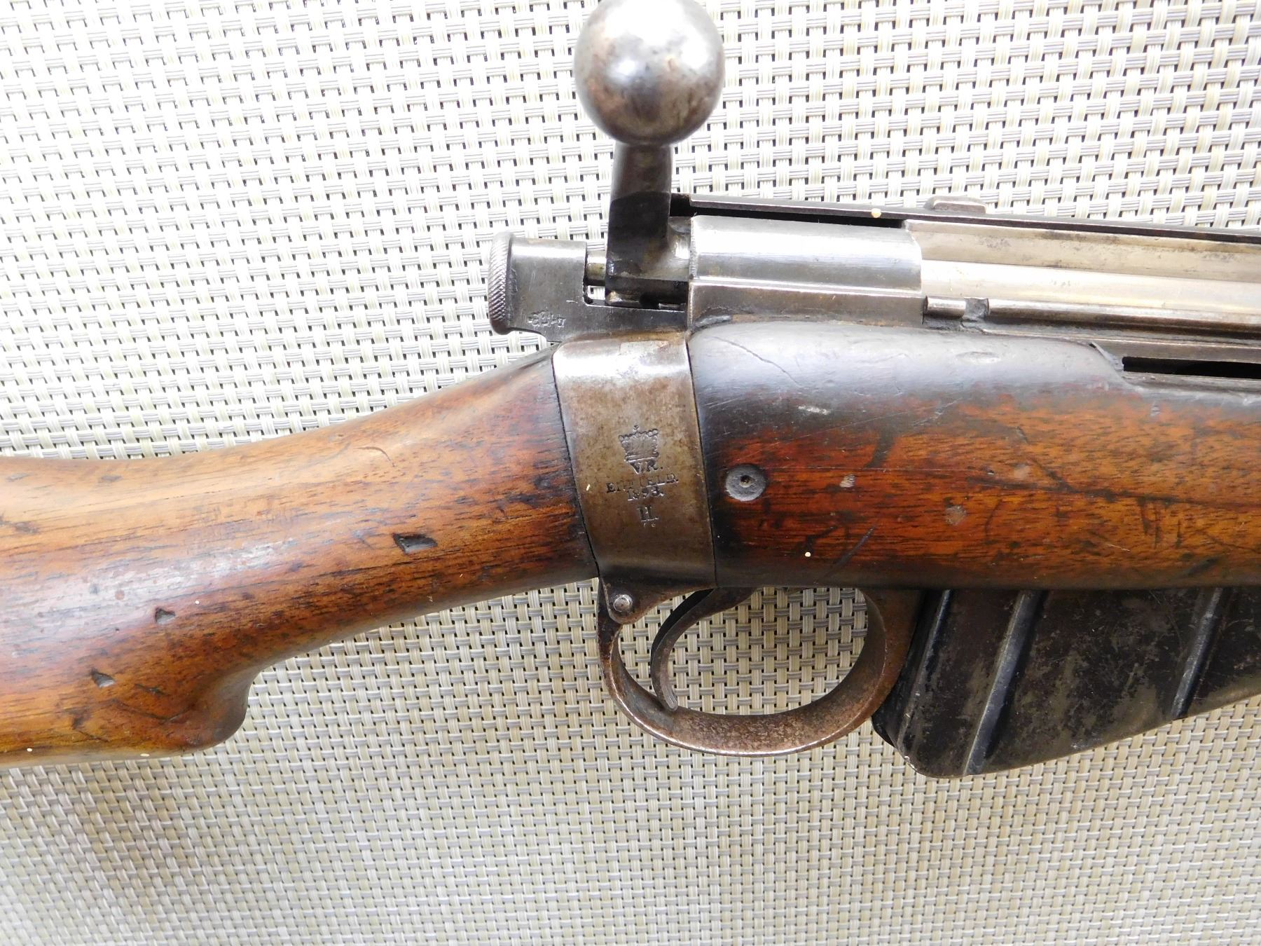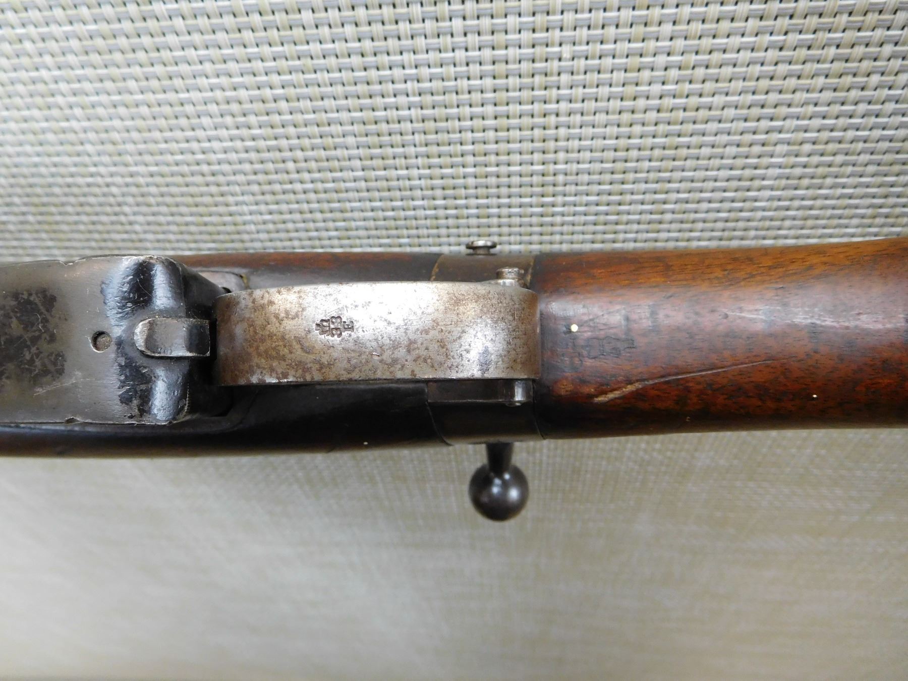 COMES WITH MAGAZINE, THIS FIREARM IS INCONSISTENT WITH REGULAR LEE ENFIELD MODELS IT IS MARKED 1893 II, IT HAS A DARK BORE, NO BOLT MOUNTED SAFETY, MISSING THE VOLLEY SIGHT, BOLT AND RECEIVER MATCH , ACTION: BOLT ACTION RIFLEE , BARREL LENGTH: 25" , STOCK # 7265 , SERIAL # 7948 , CONDITION: PARTS GUN MISSING PARTS , CLASS: CANADIAN NON RESTRICTED CLASS