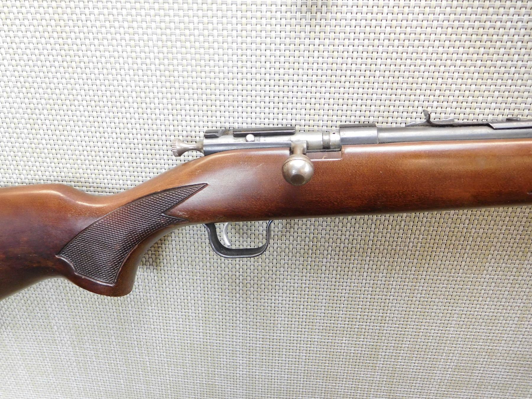 DOVETAIL FRONT AND ADJUSTABLE REAR SIGHTS, PRESSED CHECKERED FOREND AND SEMI PISTOL GRIP BUTT STOCK, SLING SWIVEL STUDS, BORE IS GOOD, HARD RUBBER BUTT PLATE WITH WHITE LINE SPACER, MADE BY WINCHESTER IN COBURG ONTARIO , ACTION: BOLT ACTION REPEATER RIFLE , BARREL LENGTH: 22" , STOCK # 7327 , SERIAL # CG045487 , CONDITION: 7/10 , CLASS: CANADIAN NON RESTRICTED CLASS