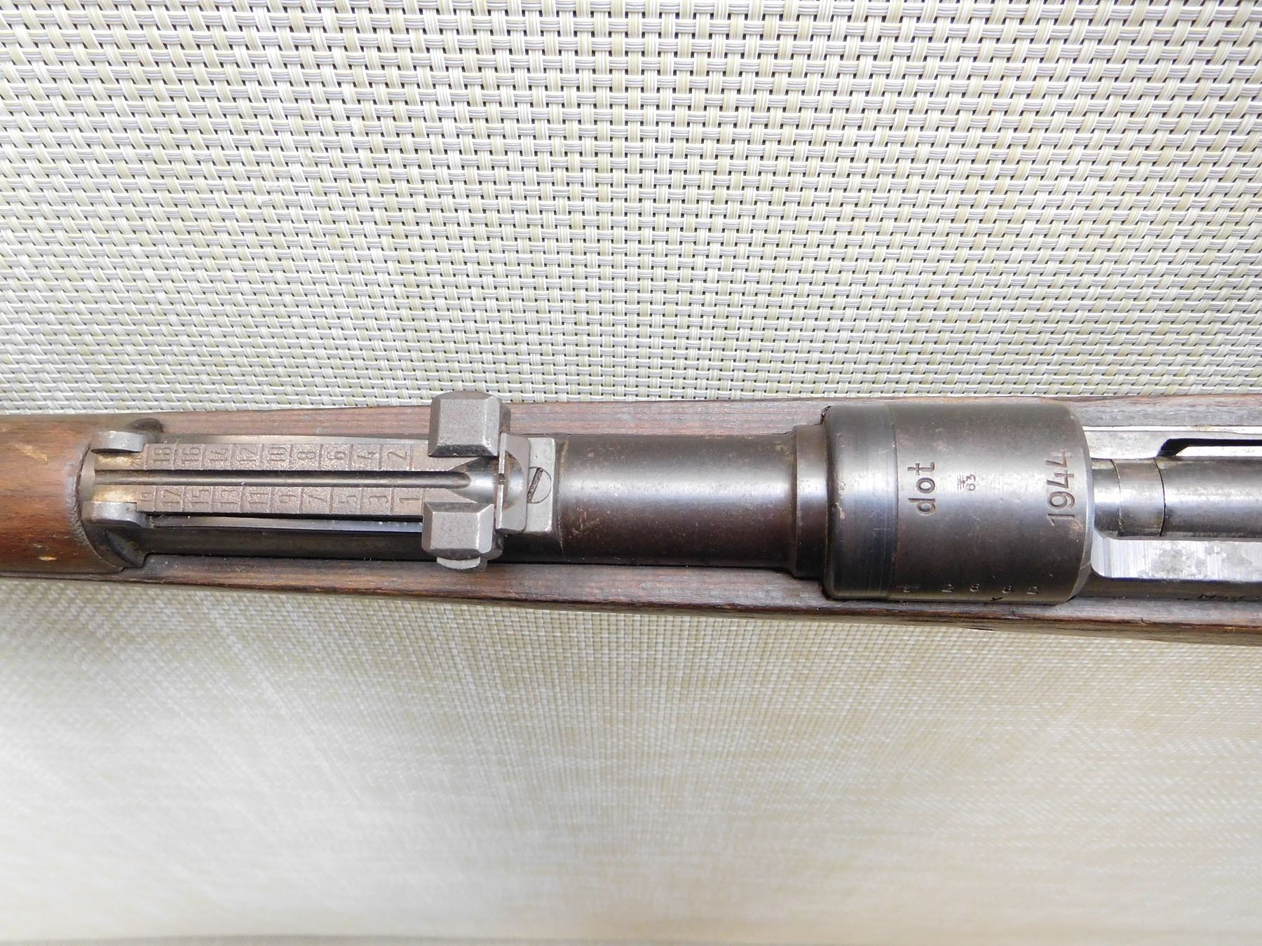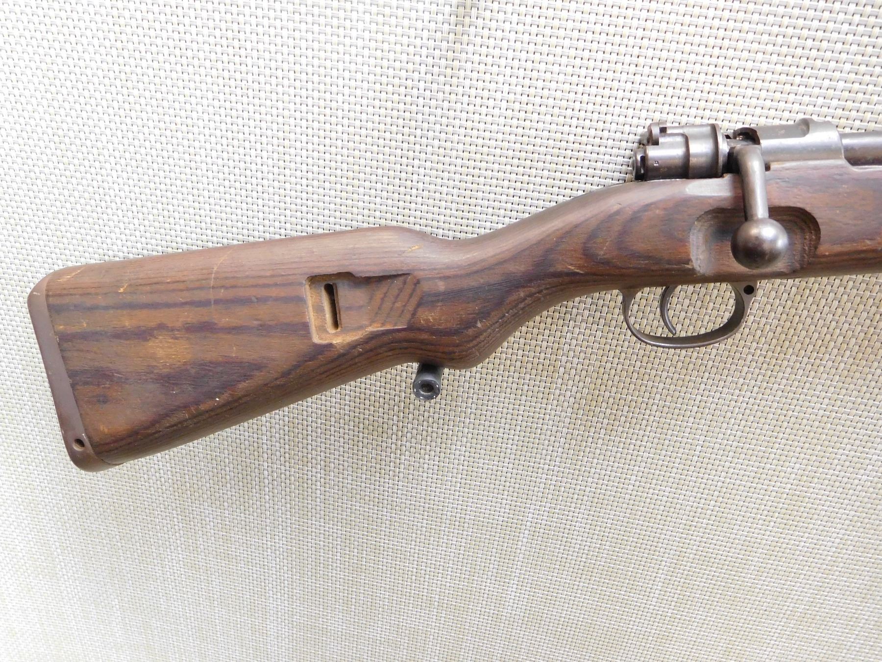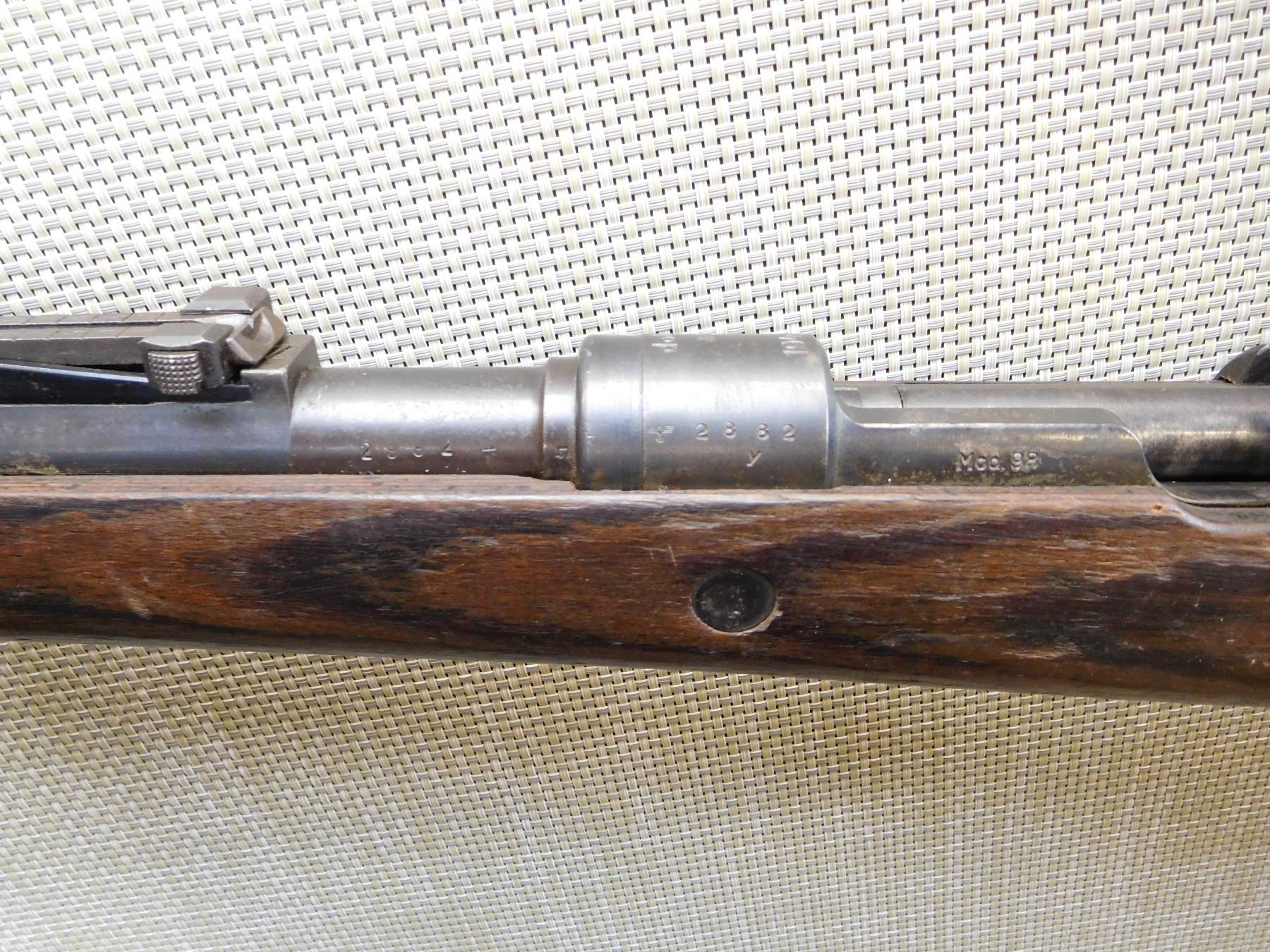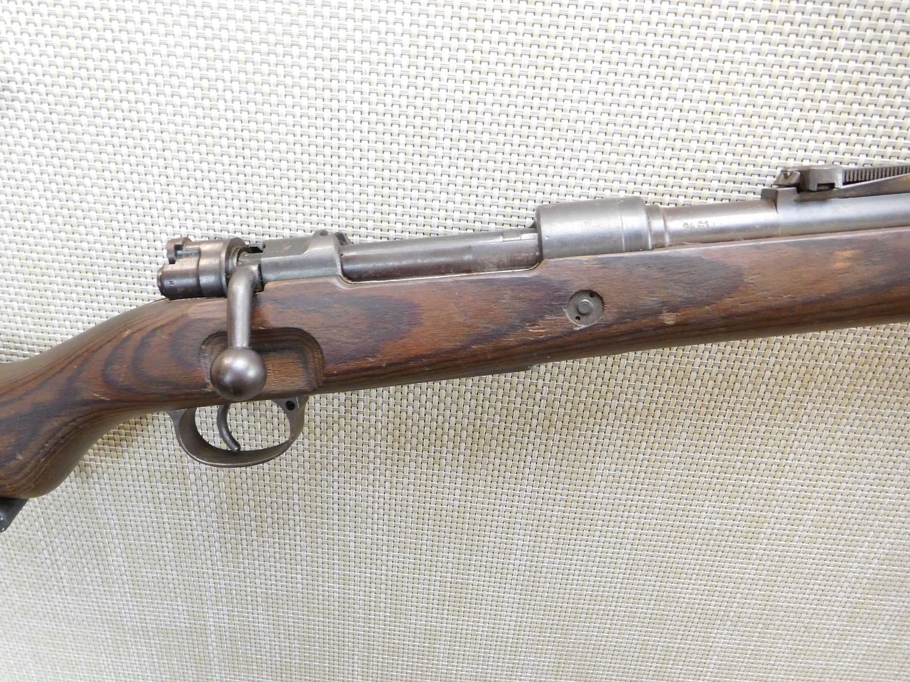 DATED 1944, FULL MILITARY CONFIGURATION WITH MILITARY MARKS, MISMATCHED SERIAL NUMBERS, VERY GOOD BORE, RAISED FRONT AND FULLY ADJUSTABLE REAR SIGHT, WAFFENWERK BRUNN, BEAUTIFULLY LAMINATED STOCK, STEEL BUTT PLATE , ACTION: BOLT ACTION RIFLE , BARREL LENGTH: 24" , STOCK # 7377 , SERIAL # 2882 , CONDITION: 6/10 , CLASS: CANADIAN NON RESTRICTED CLASS