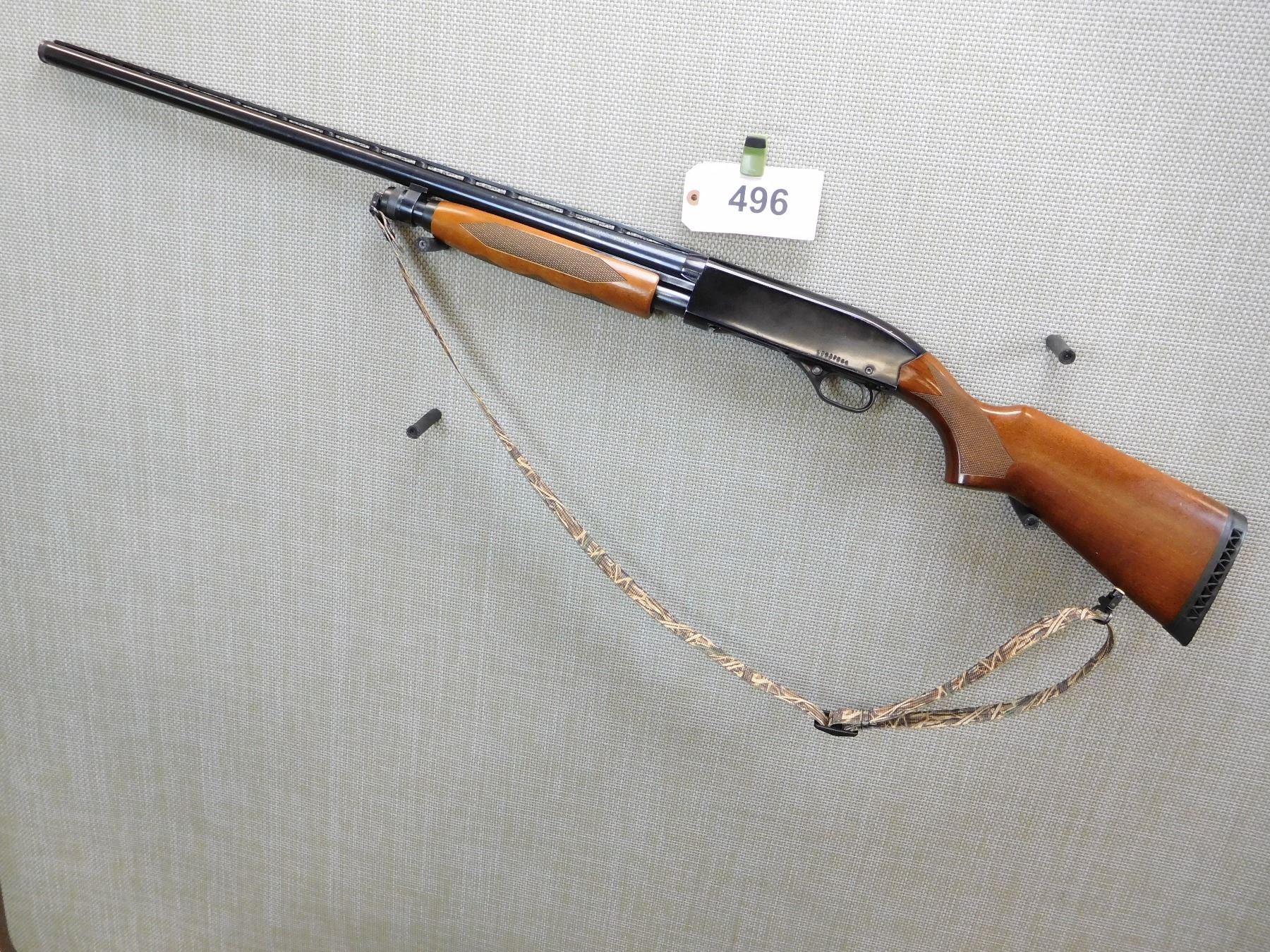 COMES WITH A TOTAL OF 2 REMOVABLE CHOKES AND A HARD PLASTIC CHOKE CASE THE FULL CHOKE INSTALLED, FULLY VENTED RIB BARREL, CHECKERED FOREND AND PISTOL GRIP, VENTED RUBBER RECOIL PAD, BORE IS EXCELLENT, DETACHABLE SLING SWIVELS WITH NYLON SLING , ACTION: PUMP ACTION SHOTGUN , BARREL LENGTH: 28" , STOCK # 7388 , SERIAL # L2437284 , CONDITION: 8/10 , CLASS: CANADIAN NON RESTRICTED CLASS