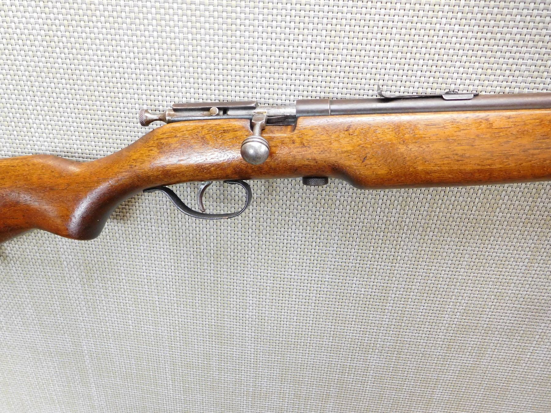 DARK BORE, DOVETAIL FRONT AND ADJUSTABLE REAR SIGHT MISSING THE ELEVATOR, SLING SWIVELS, STEEL BUTT PLATE, FISH BELLY STOCK , ACTION: BOLT ACTION SINGLE SHOT RIFLE , BARREL LENGTH: 26" , STOCK # 7394 , SERIAL # N/A , CONDITION: 5/10 , CLASS: CANADIAN NON RESTRICTED CLASS