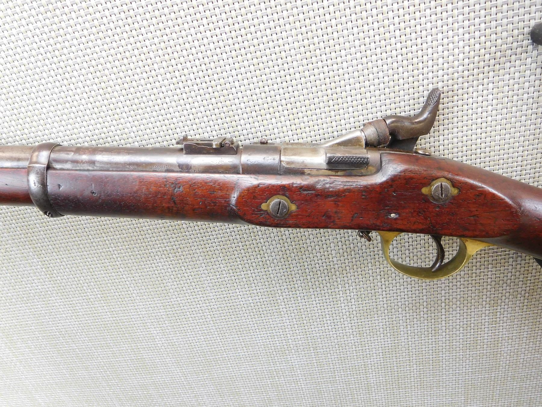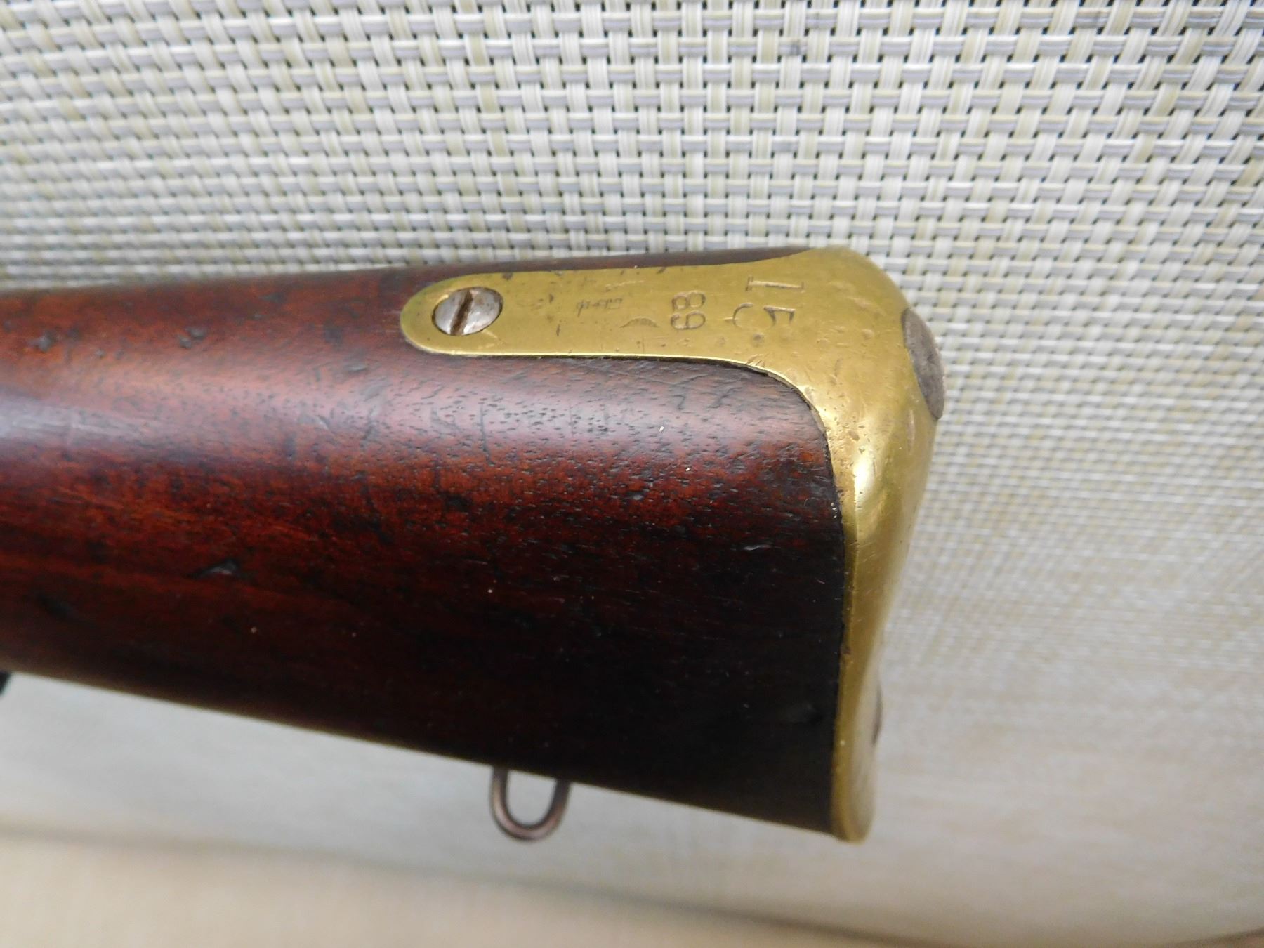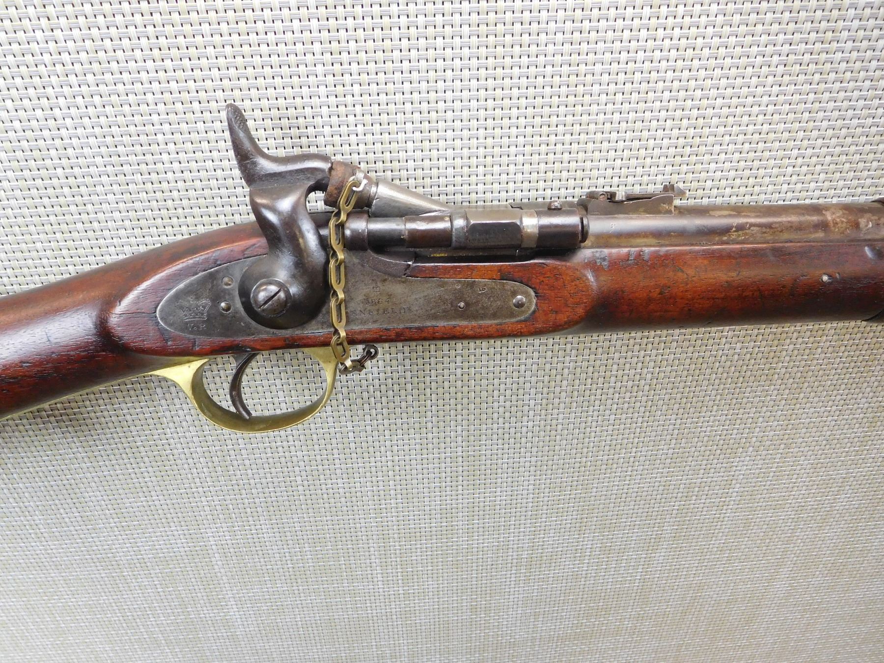 DATED 1864, FAIR BORE, BELIEVED TO BE ARTILERY CARBINE, SLING LOPP, BAYONET LUG, CLEANING ROD, NIPPLE PROTECTOR, REGIMENTAL MARKS TO THE 68TH, FIXED FRONT AND FULLY ADJUSTABLE REAR , ACTION: SINGLE SHOT , BARREL LENGTH: 24 1/2" , , , CONDITION: ANTIQUE 8/10 , CLASS: CANADIAN ANTIQUE CLASS