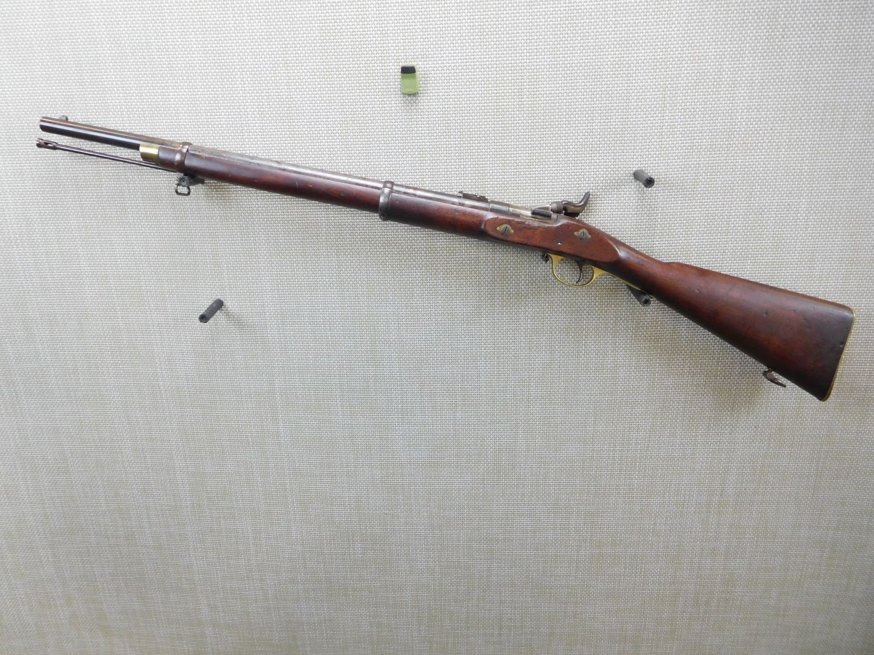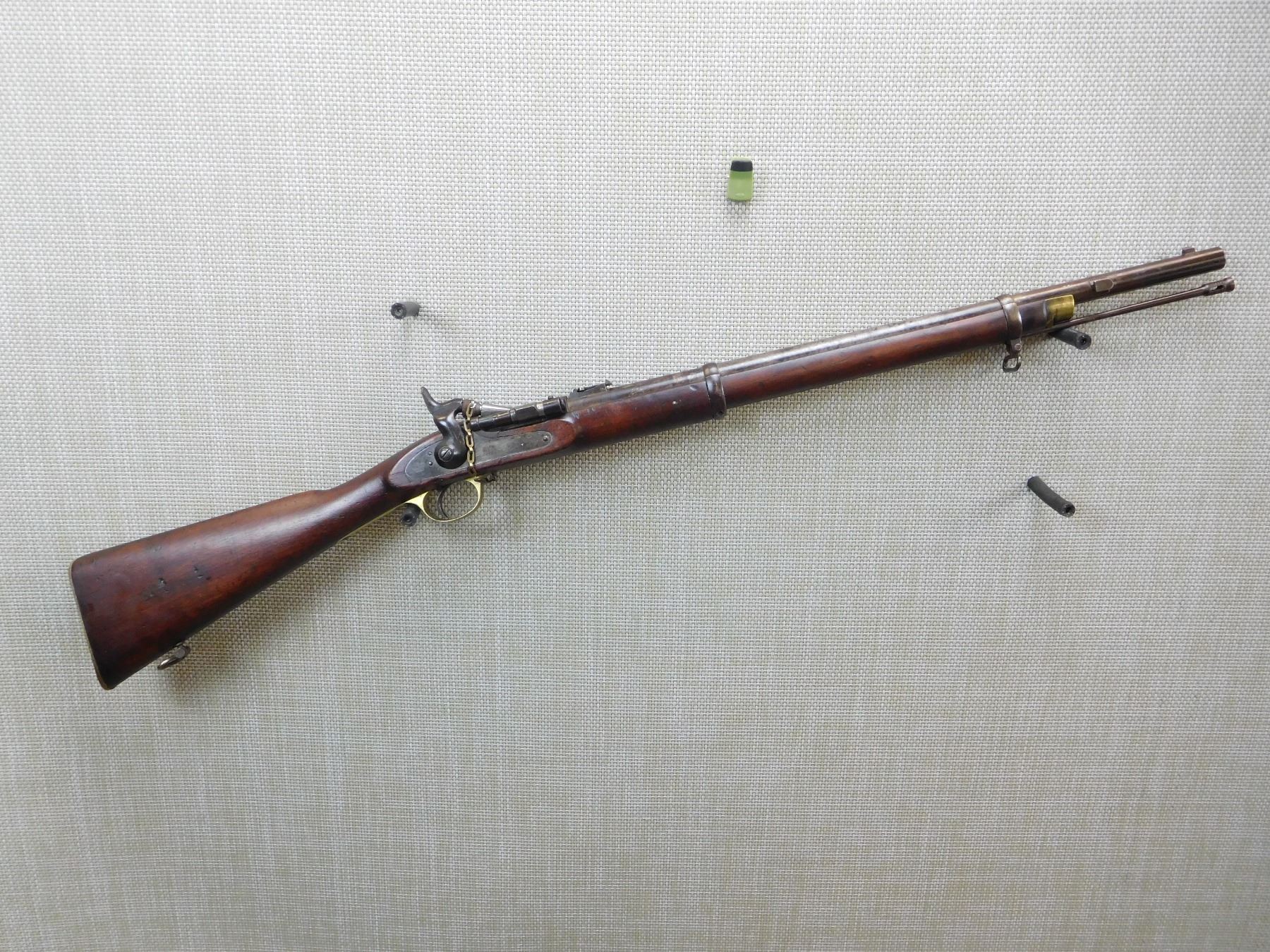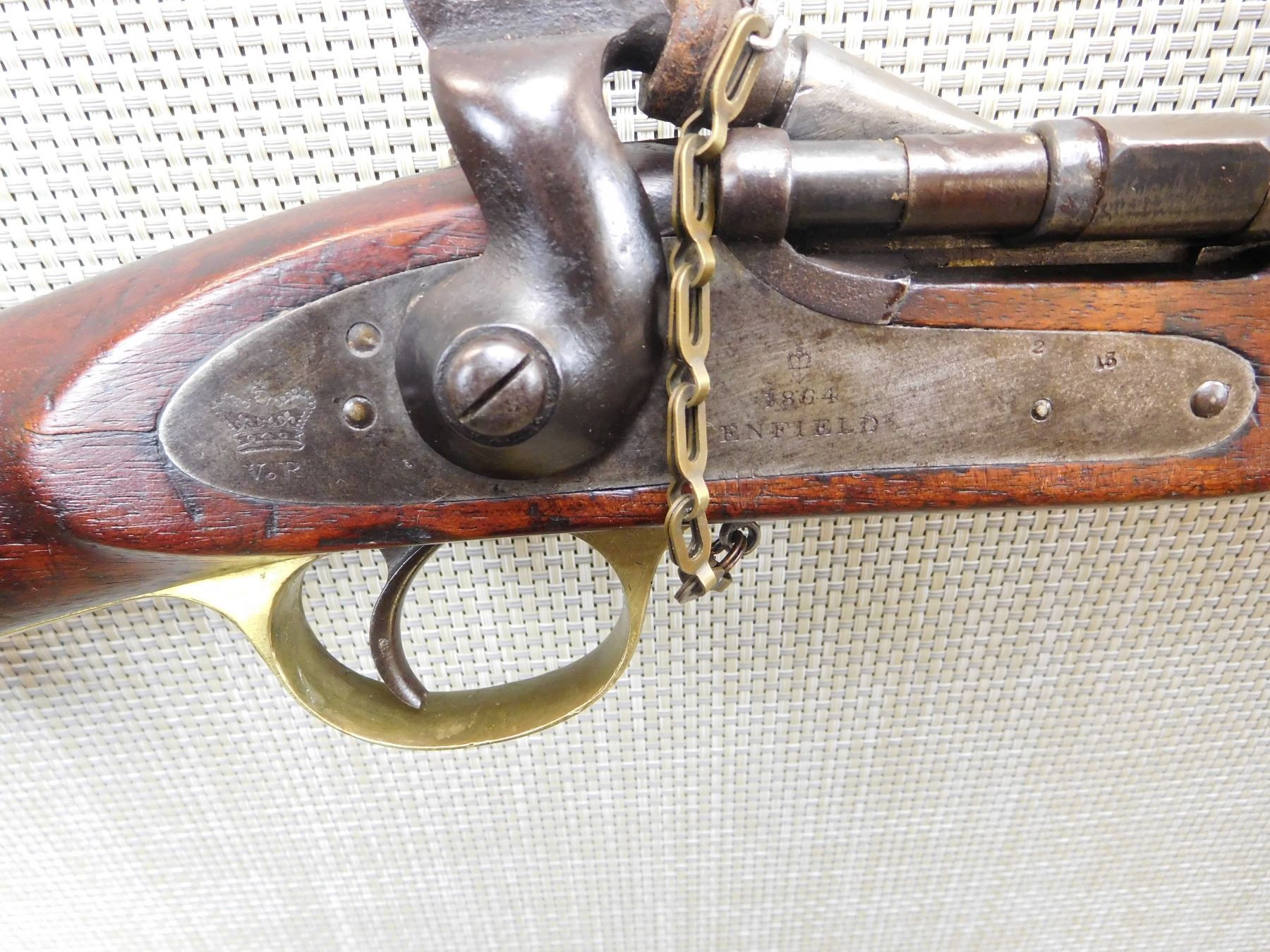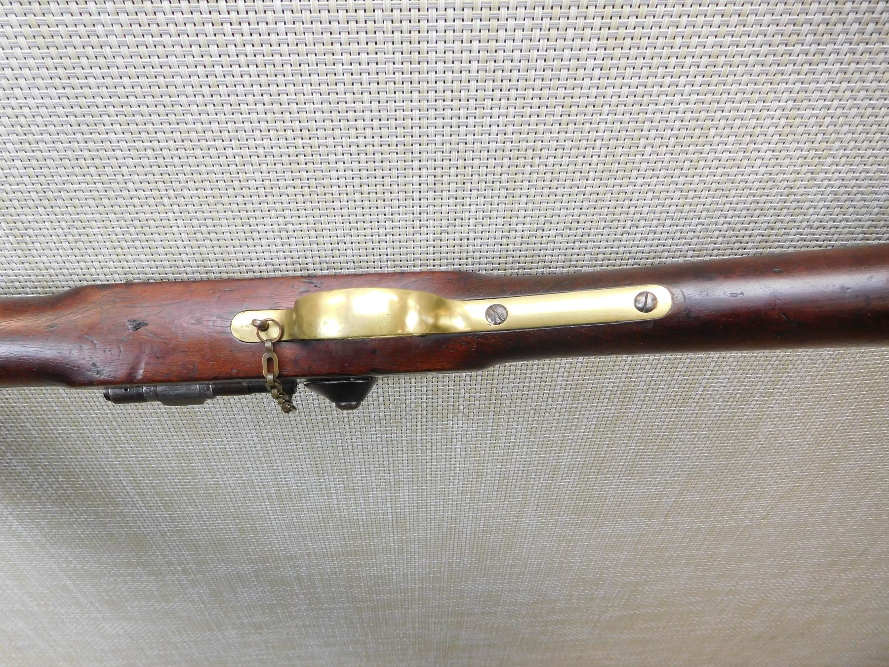 DATED 1864, FAIR BORE, BELIEVED TO BE ARTILERY CARBINE, SLING LOPP, BAYONET LUG, CLEANING ROD, NIPPLE PROTECTOR, REGIMENTAL MARKS TO THE 68TH, FIXED FRONT AND FULLY ADJUSTABLE REAR , ACTION: SINGLE SHOT , BARREL LENGTH: 24 1/2" , , , CONDITION: ANTIQUE 8/10 , CLASS: CANADIAN ANTIQUE CLASS
