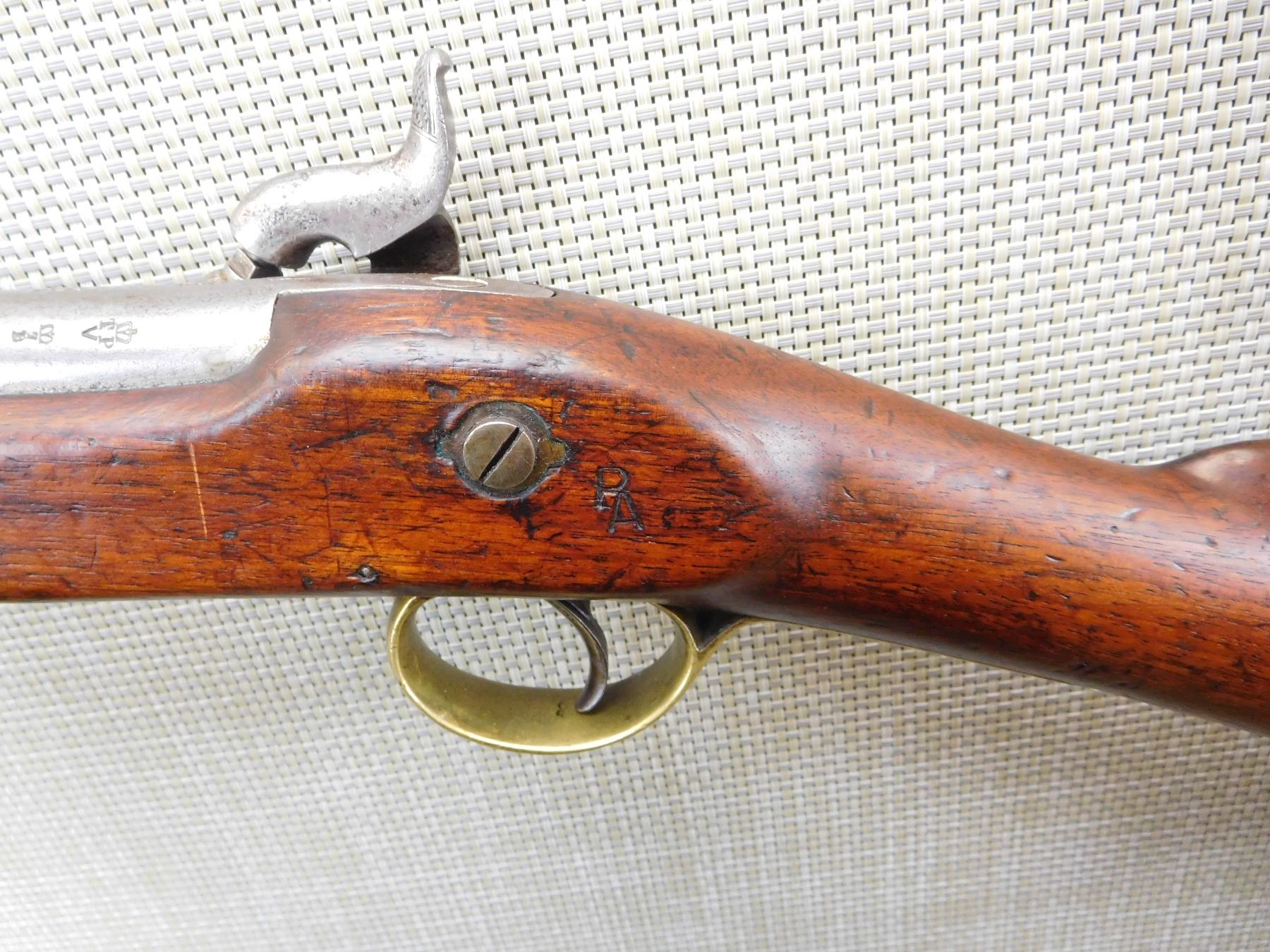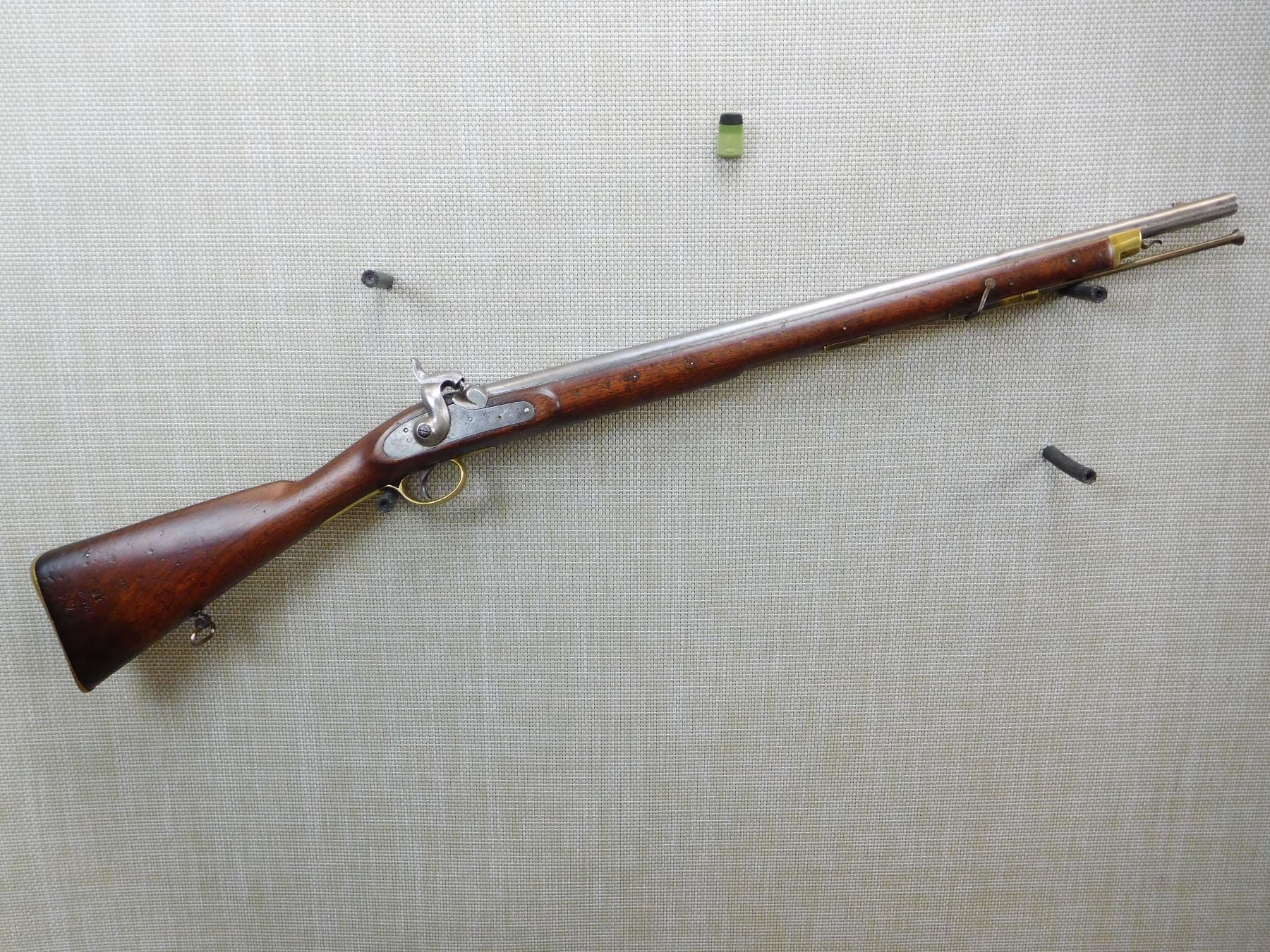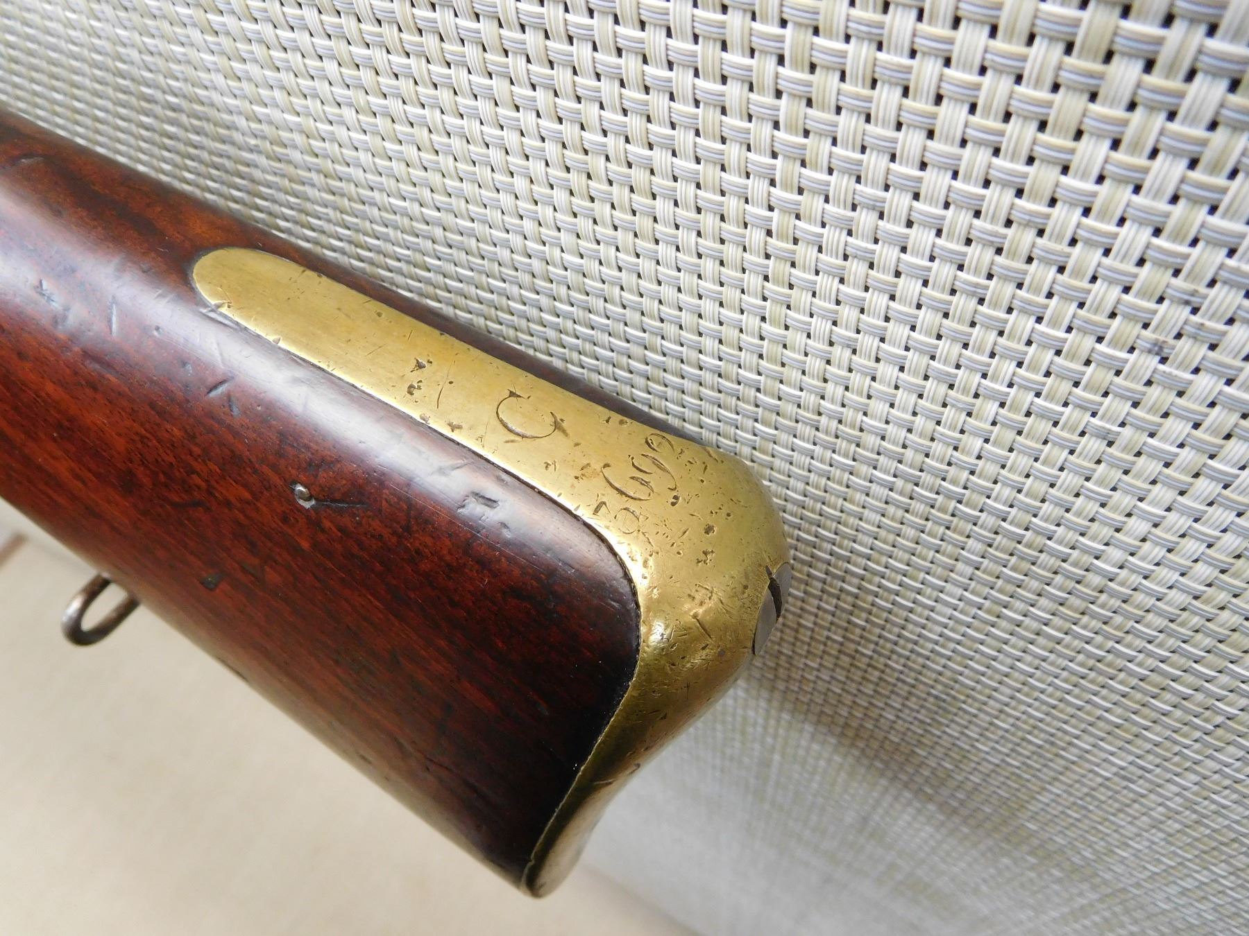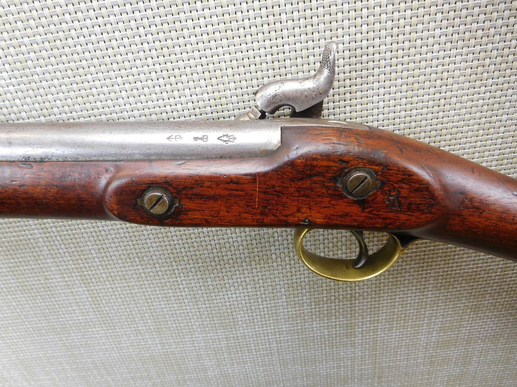1852 TOWER, REGIMENTAL MARKSC/3692,ORIGINAL RAM ROD, BRASS FURNITURE, FEATUERS THE LOVELL BAYONET CATCH, BLOCK FRONT AND NO REAR SIGHT, SLING LOOPS , ACTION: SINGLE SHOT PERCUSSION , BARREL LENGTH: 26" , , , CONDITION: ANTIQUE 5/10 , CLASS: CANADIAN ANTIQUE CLASS