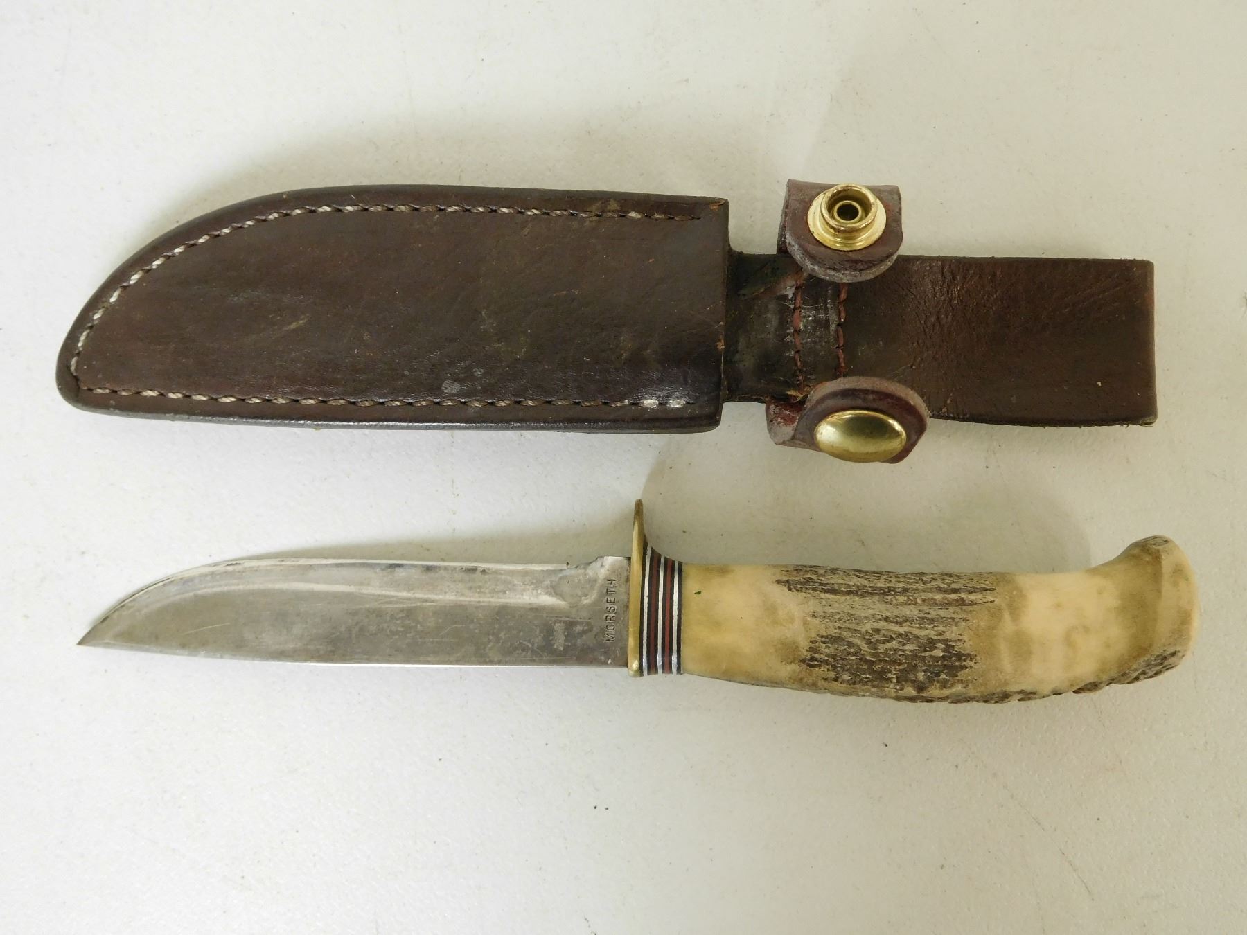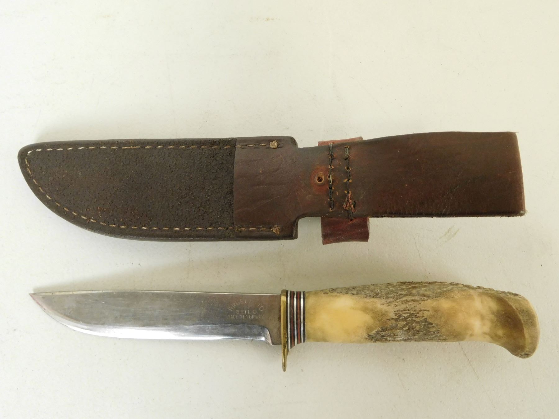 GEILO MADE IIN NORWAY FIXED BLADE ANTLER GRIP LEATHER SHEATH