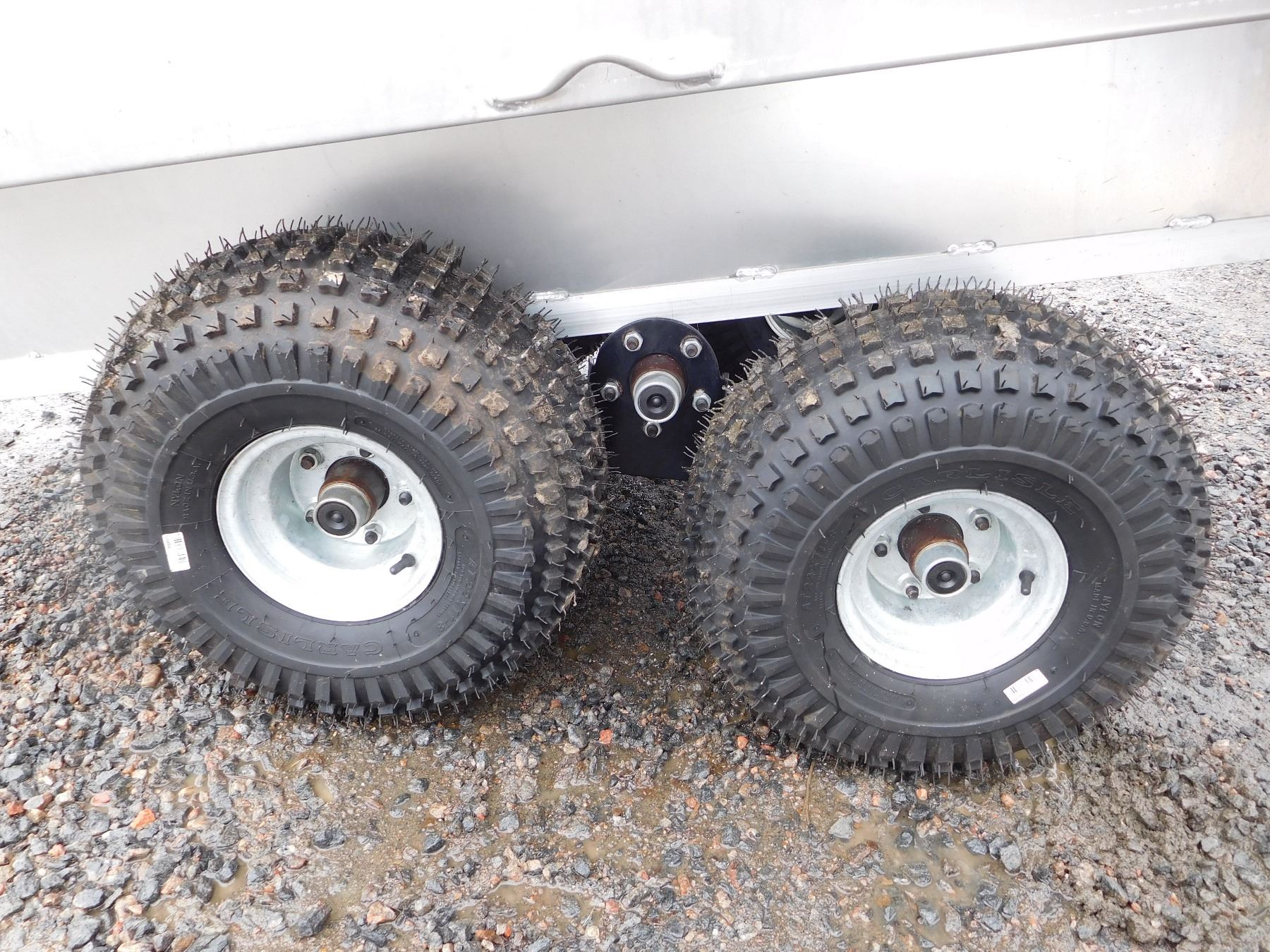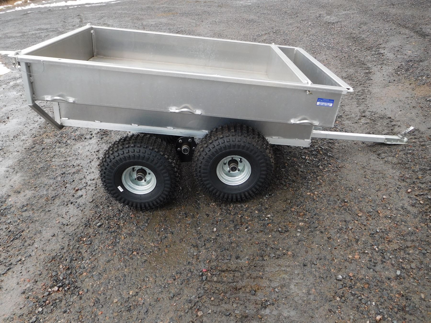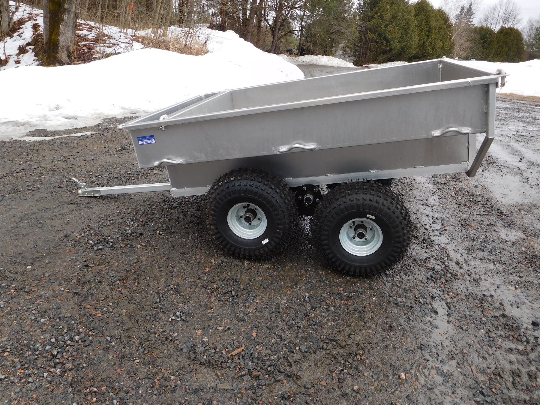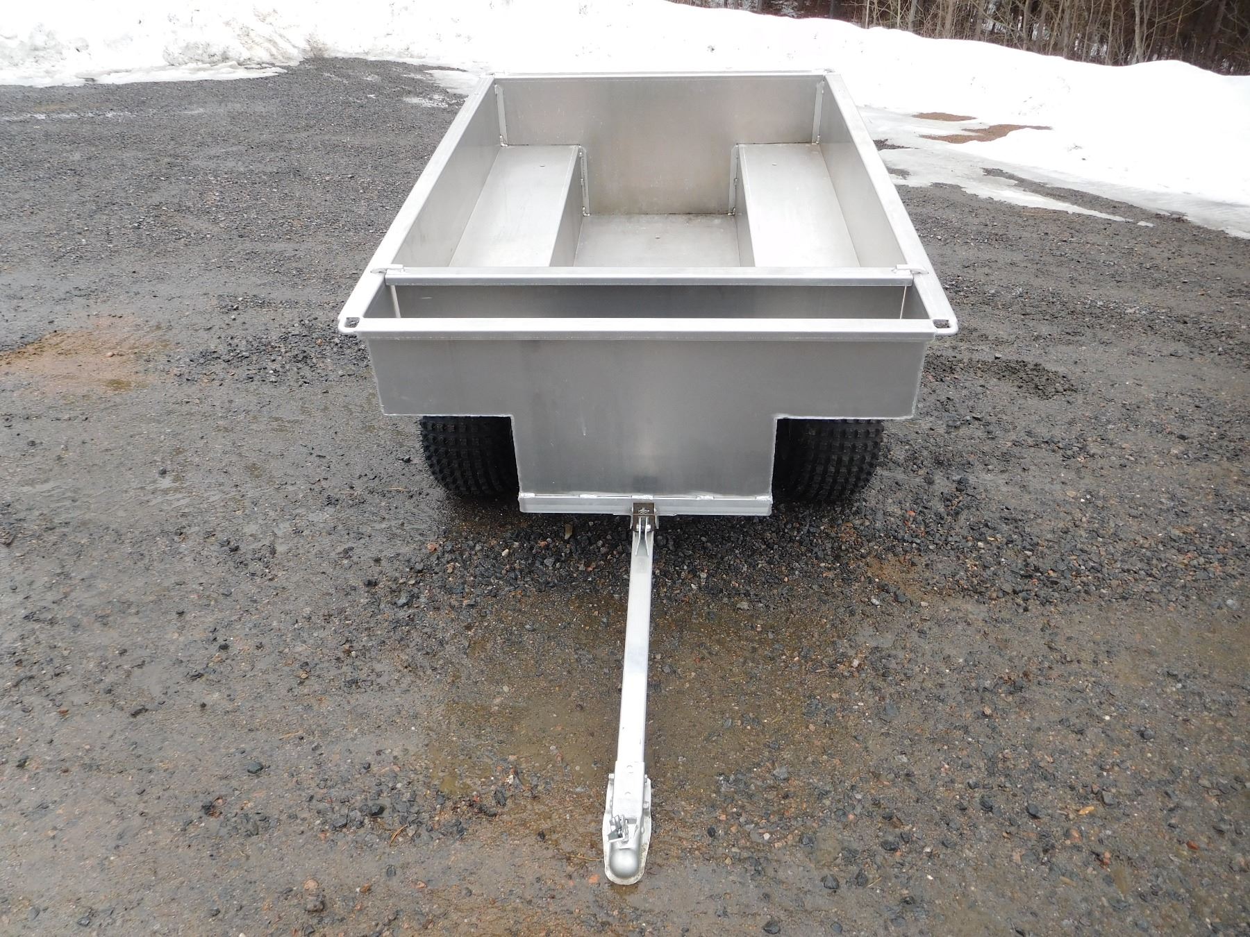 ALL ALUMINIUM CONSTRUCTION, TANDEM WALKING BEAM SUSPENSION, INTERIOR DIMENSIONS: 6FT. X 4 FT., TRAILER HAS A REMOVABLE BULKHEAD FOR STORAGE, REMOVABLE TAILGATE AND TILT FEATURE FOR DUMPING, VALUE NEW OVER $3000.00, MFG. BY IRONWORKER. NO SHIPPING