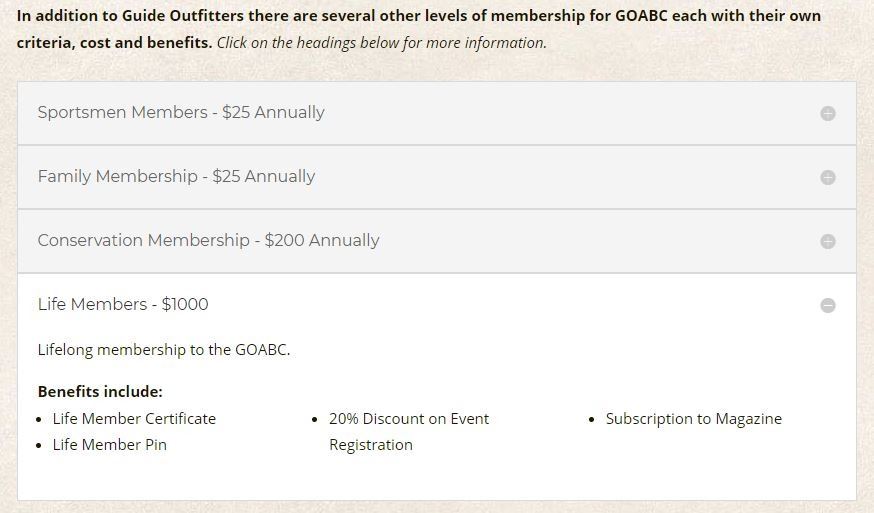 Lot 6 Life membership to Guide Outfitters Association of BC, a $1,000 value!