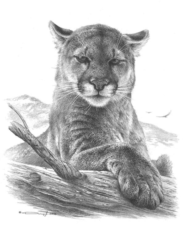 Lot 23 Cougar - Original Pencil Drawing Original Pencil Drawing by Dennis Mayer Jr. Valued at $600.00