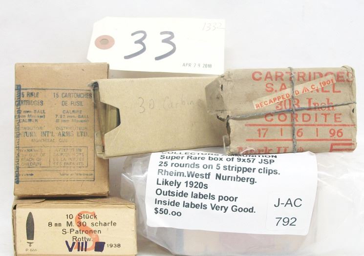 15 RNDS 7.2 X 55 MM, 10 RNDS 8 MM MAUSER WITH CLIPS, 25 RNDS 9 X 57 JSP ON STRIPPER CLIPS RHEIM. WESTF NURNBERG, 10 RNDS 303 INCH CORDITE 17 1 6 1 96 MARK 11, 20 RNDS 30 CARBINE ON STRIPPER CLIPS