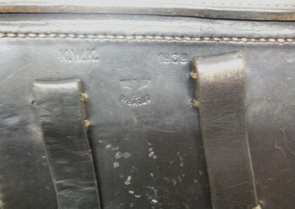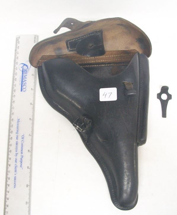 BLACK LUGER HOLSTER WITH TOOL, DATED 1939 WITH IMPERIAL EAGLE AND SWAZTIKA, MARKINGS WaA107, K.W.K.