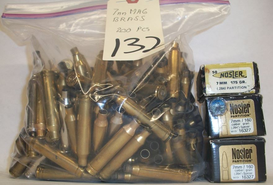 200 PCS BRASS, 100 NOSLER 160 GRN SPITZER PROJECTILES, 50 NOSLER 175 GRN PARTITION PROJECTILES.