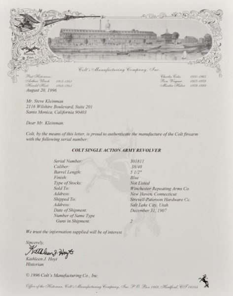 * Shipped to Winchester. Mfd 1907. With factory letter