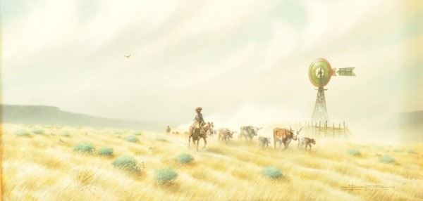 Lot 213 Donald Yena Cow Trails, Dust & Wind Original Oil