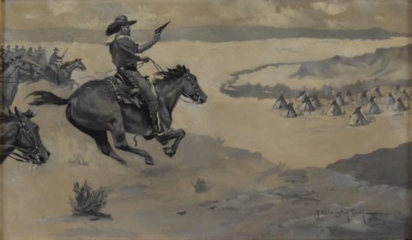 Lot 223 Robert Farrington Elwell "Cavalry Attack" Oil