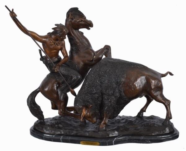 Lot 342 Theodore Bau "Buffalo Hunt" Bronze