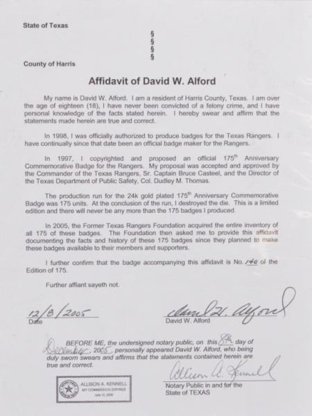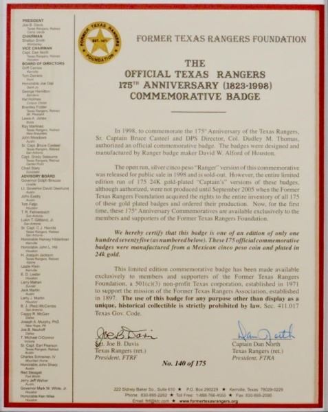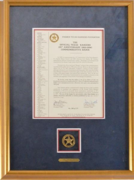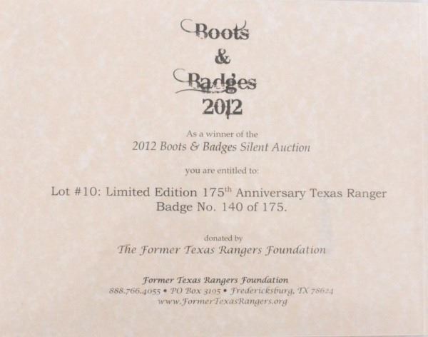 Lot 89A Texas Ranger 175th Anniversary Commemorative Badge