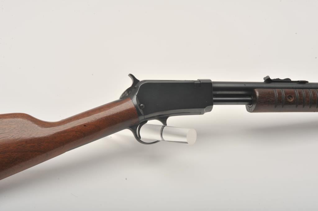 Winchester Model 62A pump action rifle, .22 short, long or LR caliber, 23” round barrel, blued finish, wood stocks, S/N 404763, in overall excellent condition displaying the majority of its original finish, crisp Lot Title action, sharp markings, fine bore and excellent wood. (C&R). Est.: $400-$800.