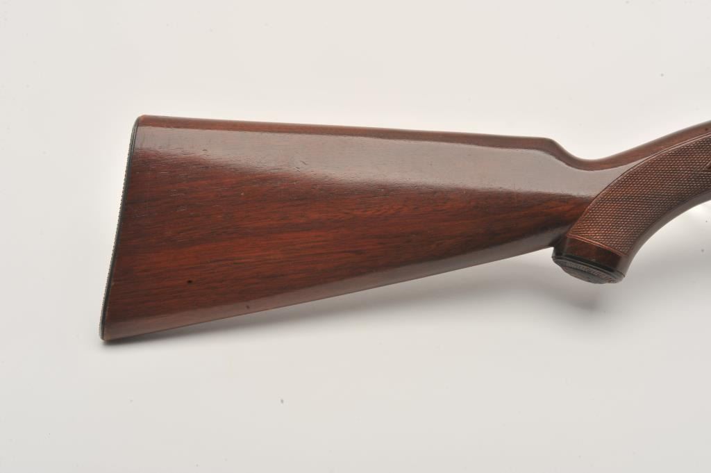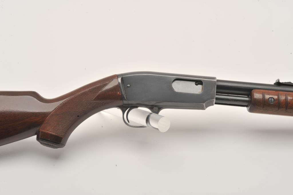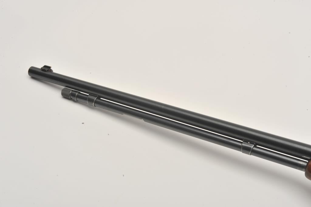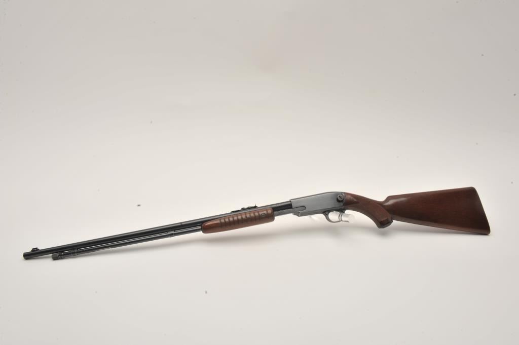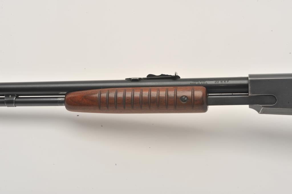 Early Winchester Model 61 pump action rifle, .22 W.R.F. caliber, 24” round barrel, blued finish, wood stocks, S/N 3467, in overall fine condition showing majority of original blued finish with high point wear, fine bore, Lot Title crisp action, sharp markings and fine stock with checkered semi-pistol grip to butt stock. Accompanied by instructions sheet. (C&R). Est.: $600-$1,200.
