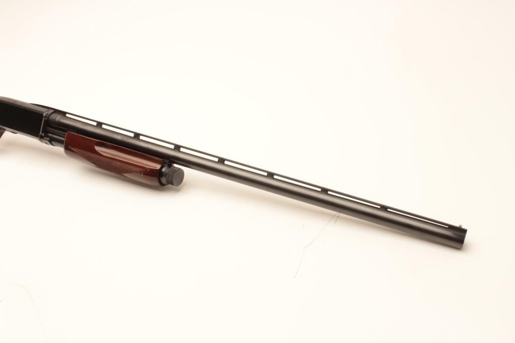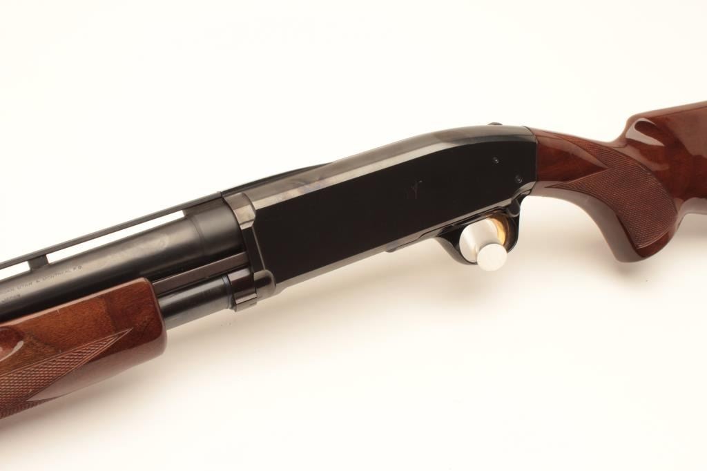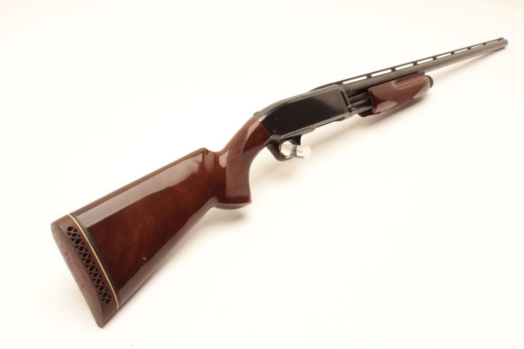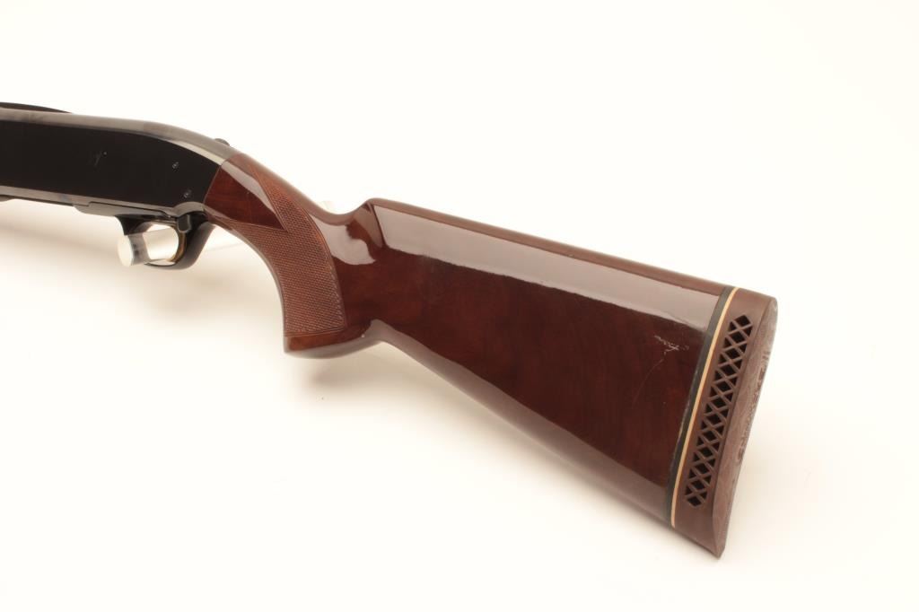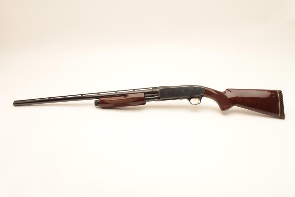 Browning BPS Field Model pump action shotgun, 12 gauge, Serial #30277PM152. The shotgun is in fine overall condition with a 28” barrel with a steel bead front sight and full-length ventilated rib. The barrel and Lot Title receiver retain nearly all of their blued finish. The high gloss checkered wood stocks are in very good condition with only light handling marks. The butt ends with a Browning marked ventilated rubber butt pad Lot Title providing a 14” LOP. The bore is very good, the action crisp and markings are sharp on this desirable Browning. Est.: $300-$600. (Modern).