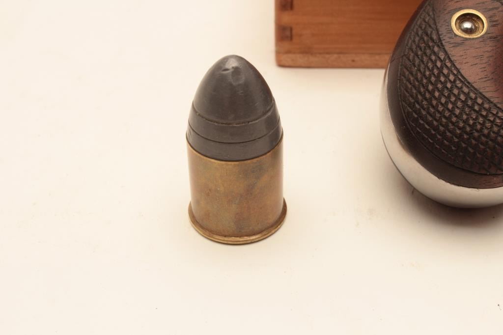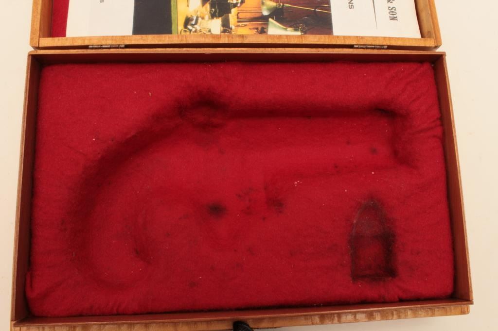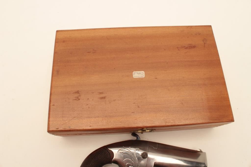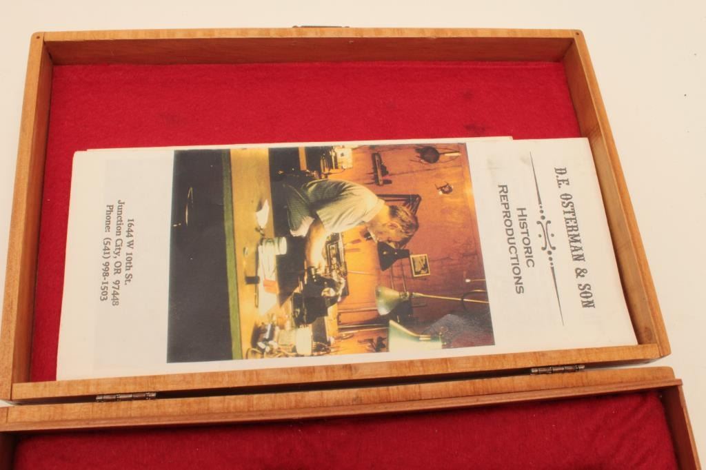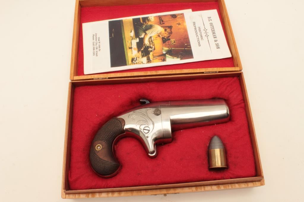 Massive copy of a Colt No. 2 single shot derringer by D.E. Osterman of Historic Reproductions, Junction City, OR.; approximately 7” overall, steel construction with checkered wood grips, no visible S/N in Lot Title overall fine condition and in a lined wood casing with flyer Est.: $1,000-$2,000.