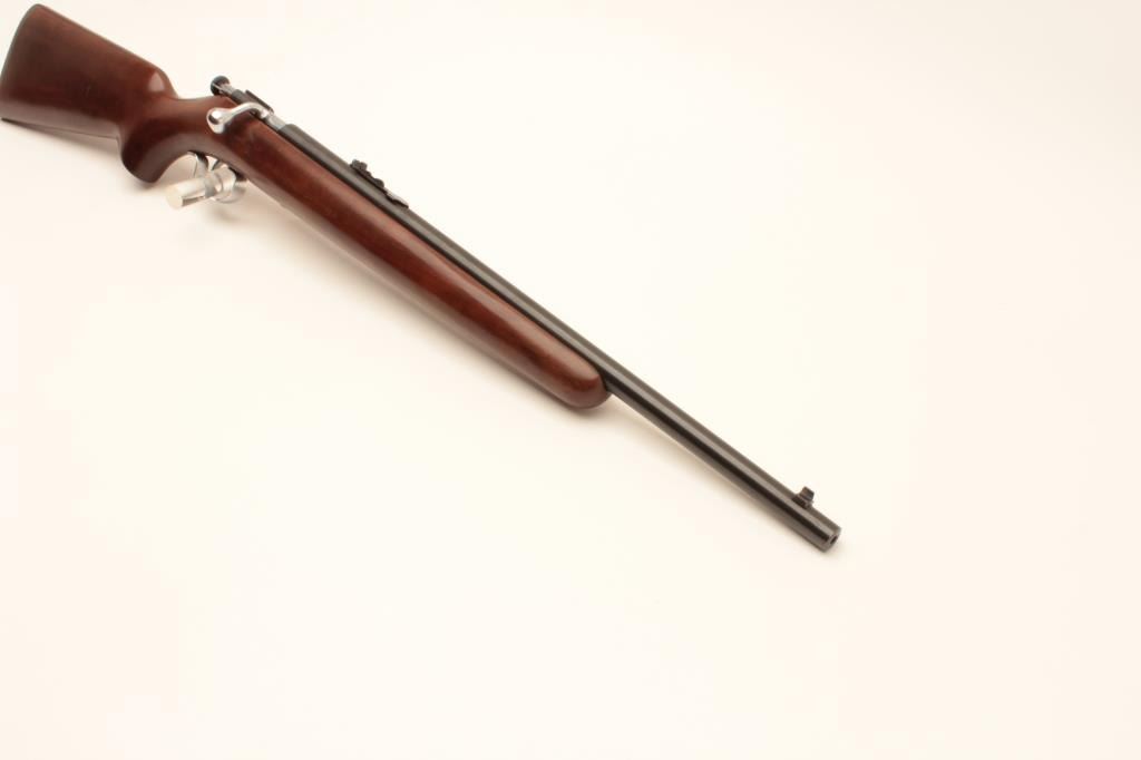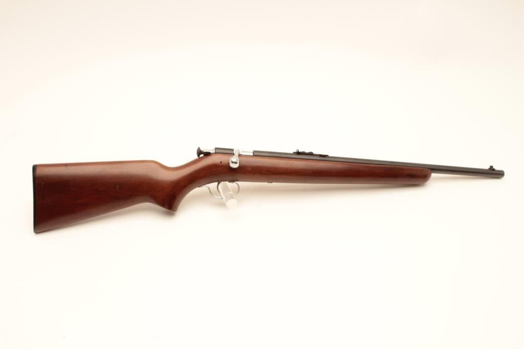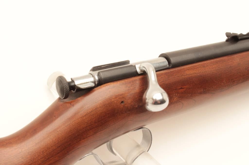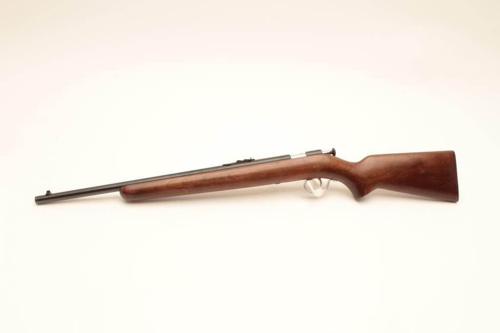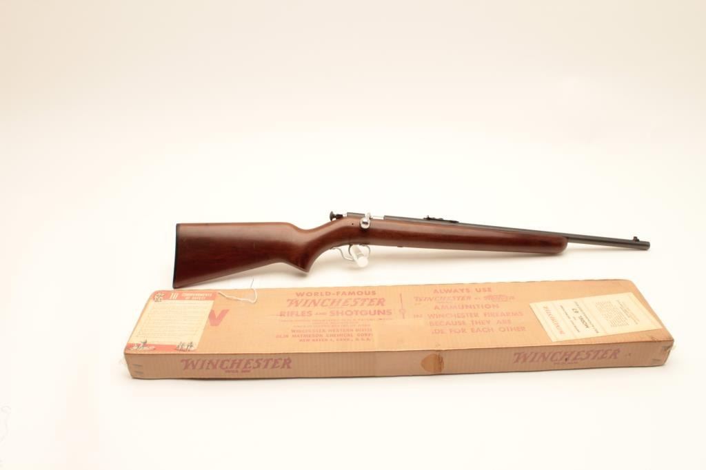 Winchester Model 67A bolt action boy’s rifle, .22 short, long or LR caliber, 20” round barrel, wood stock, no visible S/N, with factory cardboard box in overall like new condition showing little handling, box is Lot Title near fine with instructions sheet. (C&R). Est.: $250-$500.