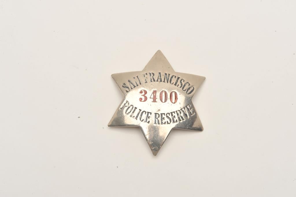 6 point star badge San Francisco Police Reserve (hallmark Irvine & Jachens, S.F.). Est.: $150-$300.