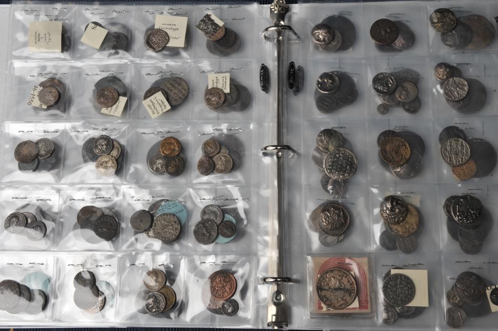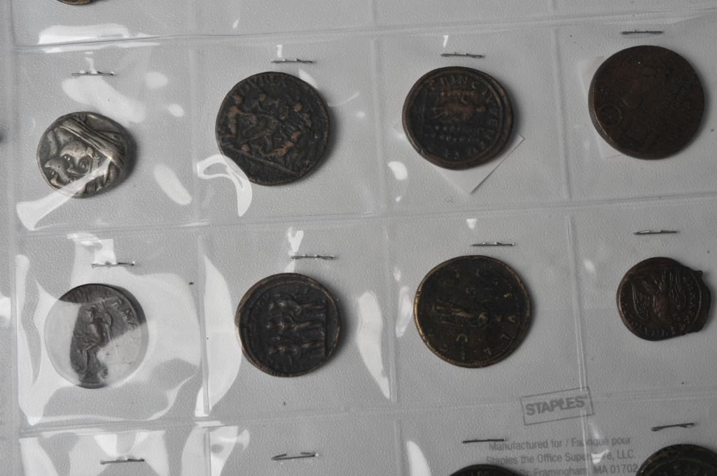 Lifetime collection of ancient coins collected by Dennis Tupper of J.S.D. Coins between 1960s and 70s. Dennis and Jack Glowe produced highly regarded catalogs and were recognized experts and authorities on ancient Lot Title coins. Dennis identified one coin as Spanish Charles II priced $4,000 in 1978! 180 plus total. Various metals and condition. Along with his “Show” case for sales events. Valued by Tupper at $10,000 plus when he was Little Lot Title John’s graphic artist in 1980’s. From his estate. Sold as collection only. Est.: $5,000-$10,000