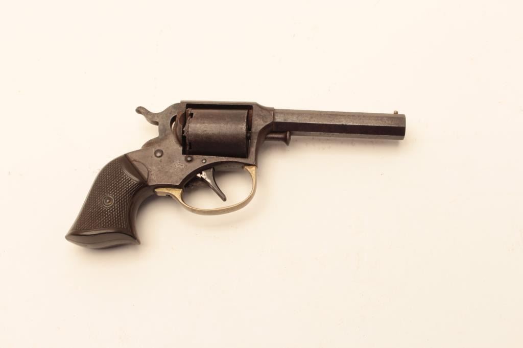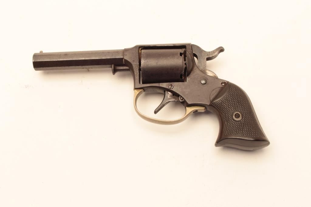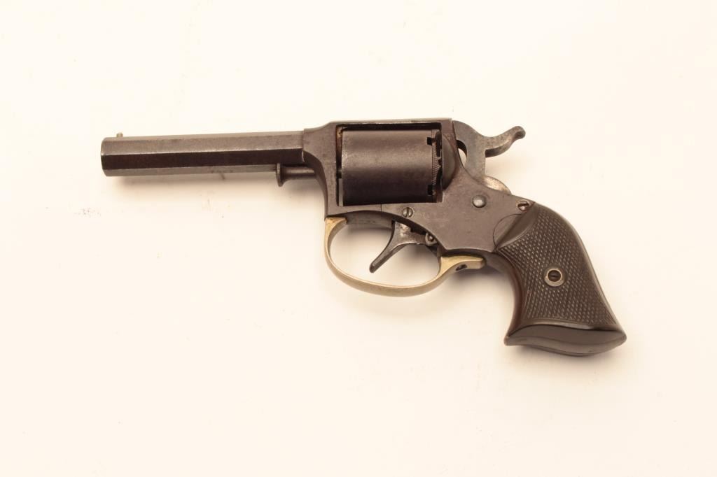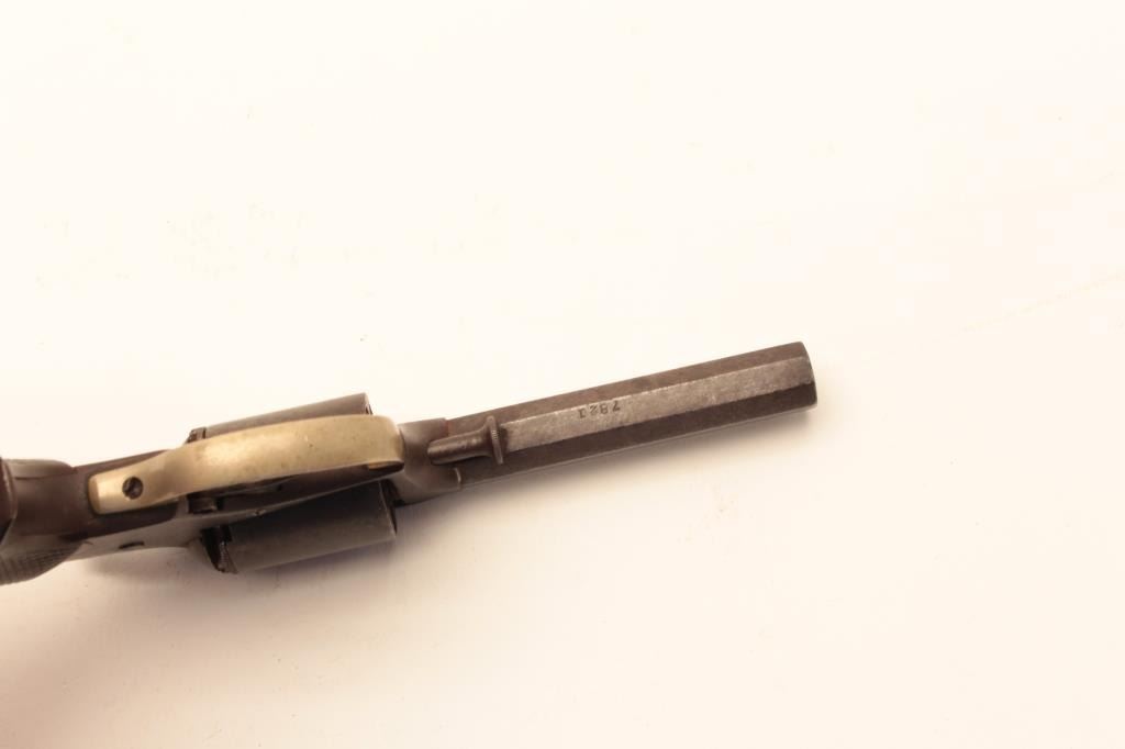 Crisp Remington Ryder Pocket Revolver in 30 rf.. Bluing has browned but revolver shows little wear. Gutta Percha grips are fine. Action is tight. Nice untouched example of this diminutive Remington. Good overall Lot Title Est:$400-800