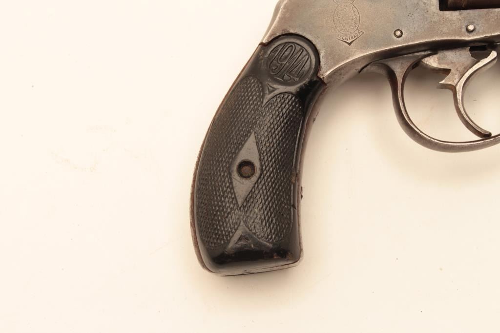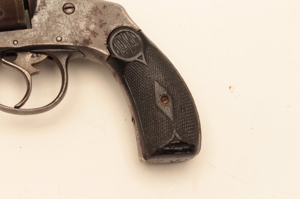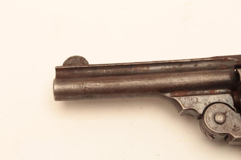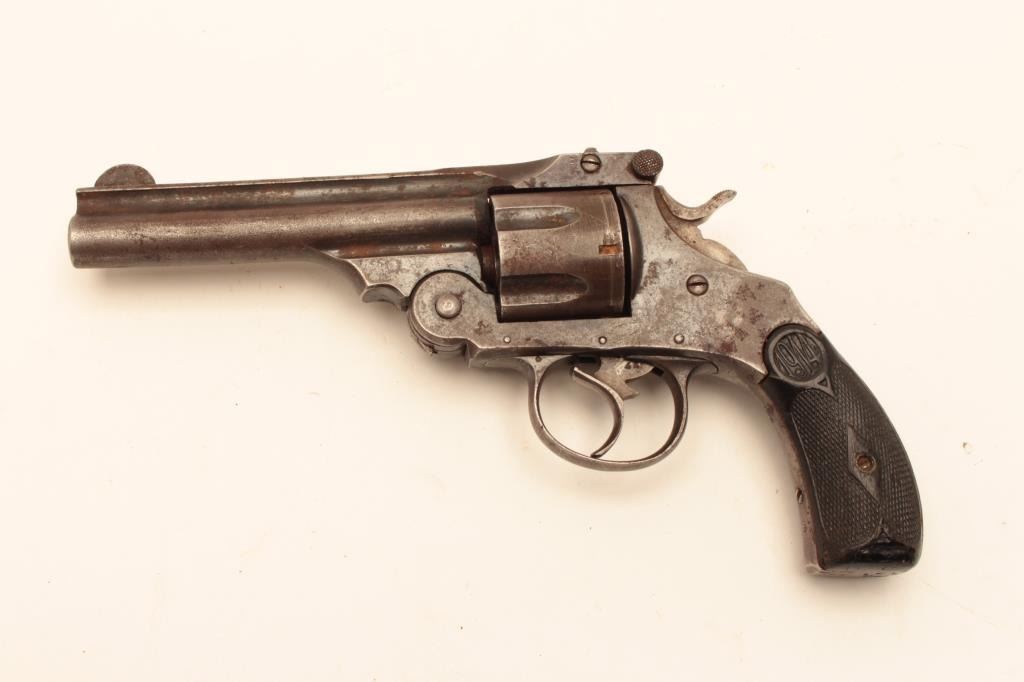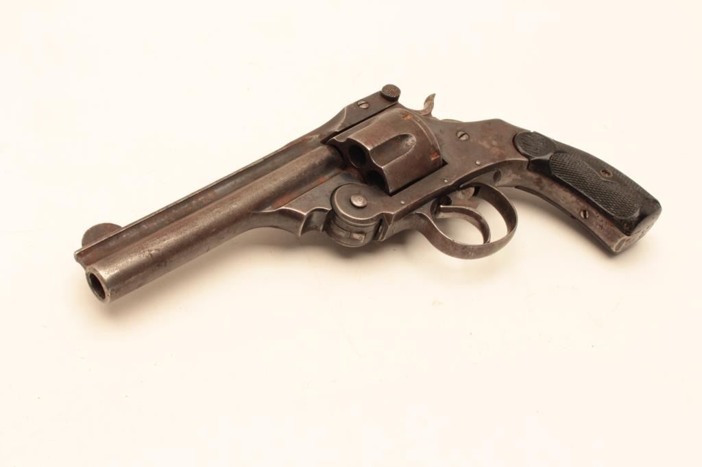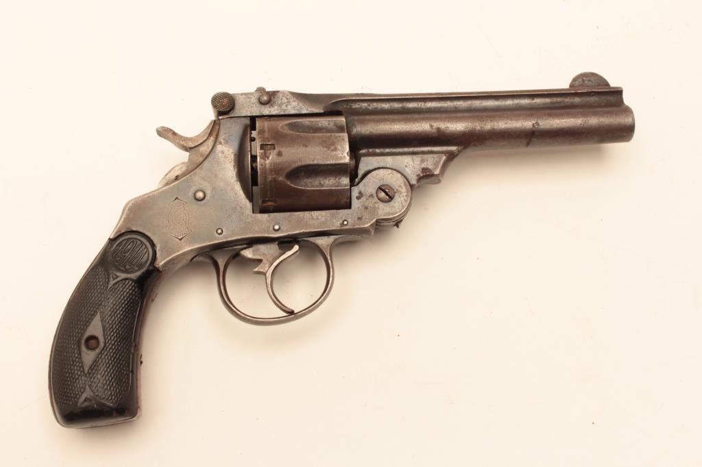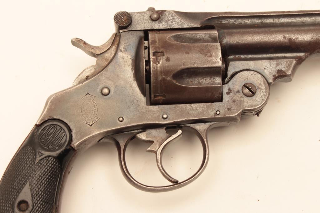 Spanish copy of a Smith & Wesson 1st model Double Action Frontier revovler marked “Secret Service 44 S&W” on the barrel. Good condition with 30%-50% blue and some minor pitting and erosion. Very good grips and Lot Title tight action. The bore is fair with minor roughness. Post 1898. (C&R/PPT) Est.: $200-$400