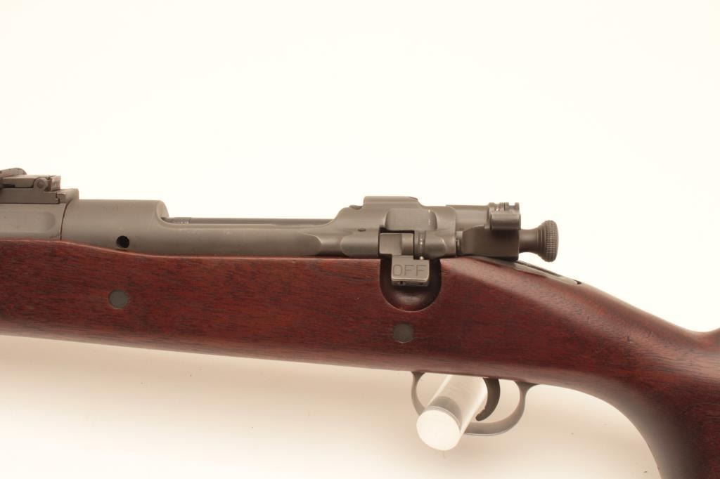 Rock Island Arsenal 1903 #338491, 30-06 cal, 24" Criterion barrel, parkerized finish. Rifle is invery good to near fine condition as restored. Reclaimed receiver tastefully restored in the area of the safety. (C&R) Lot Title Est. $400-800
