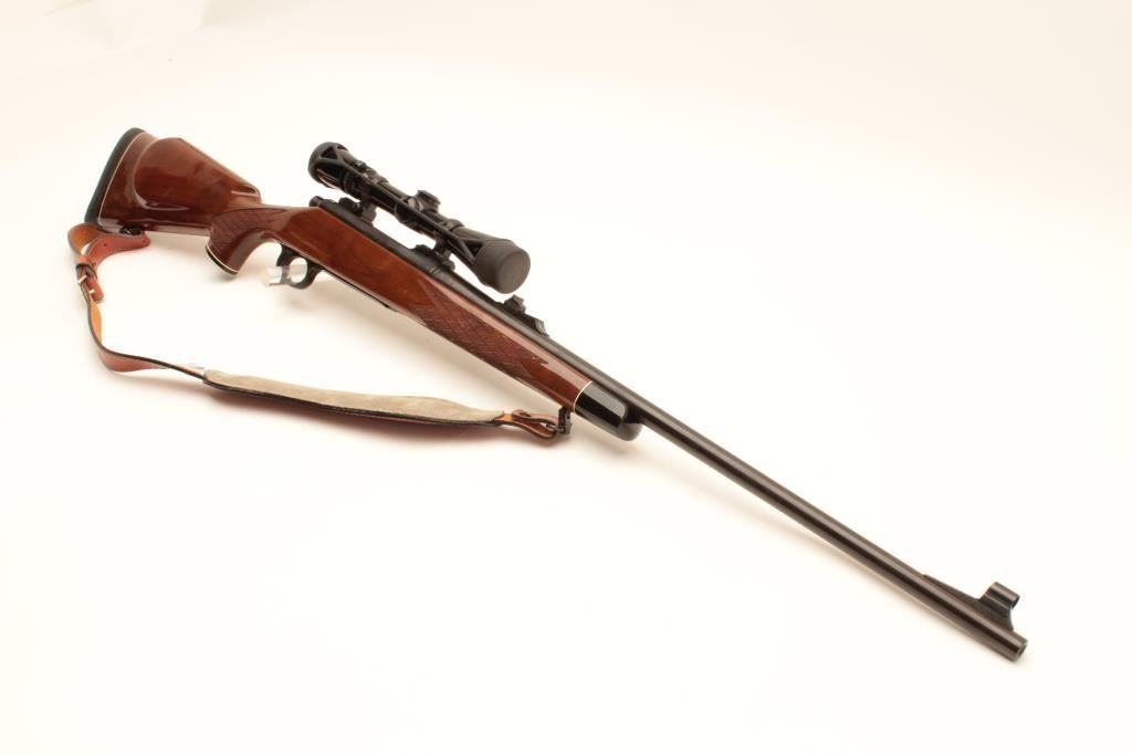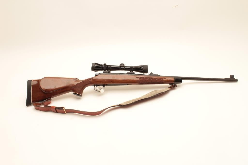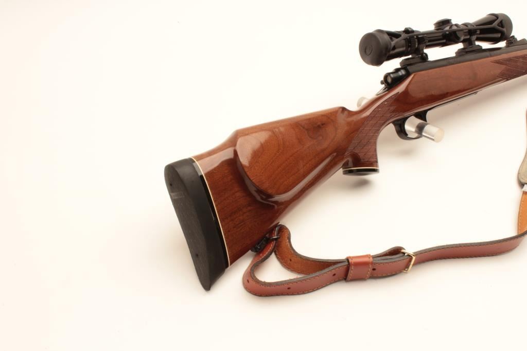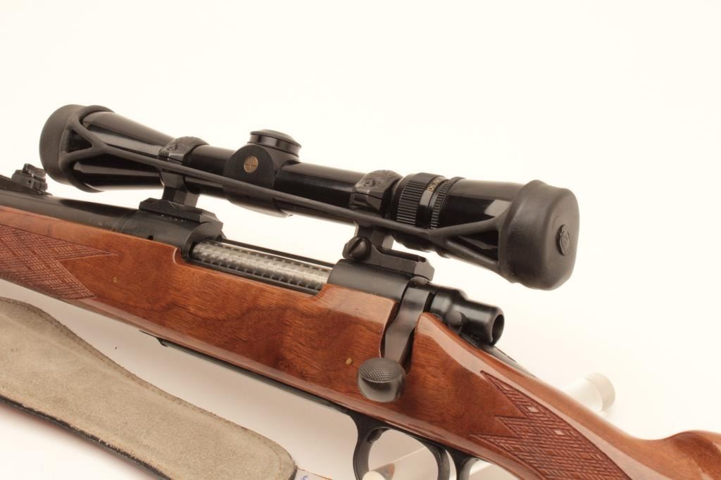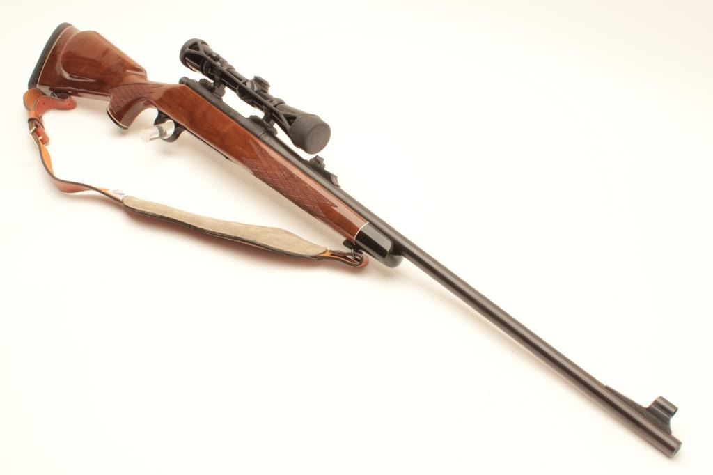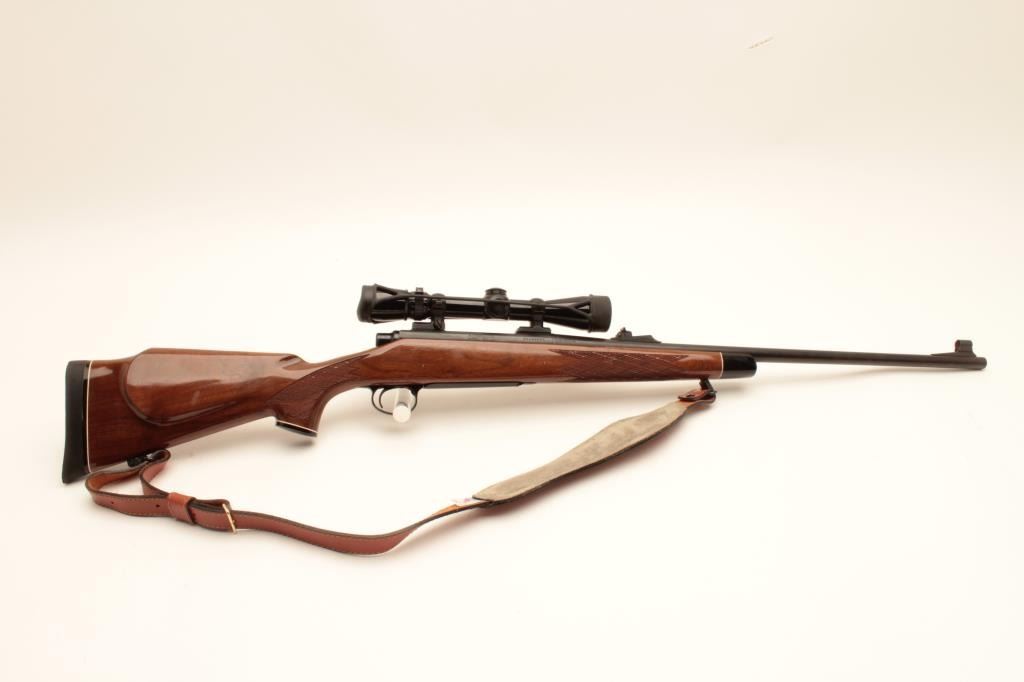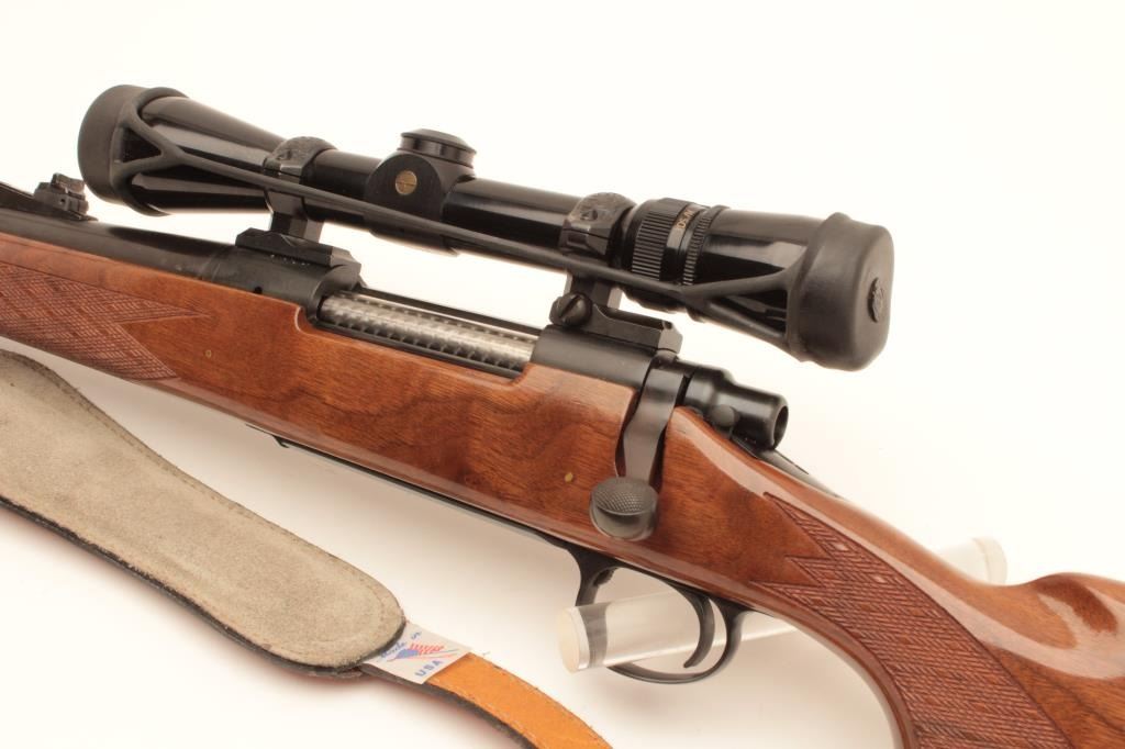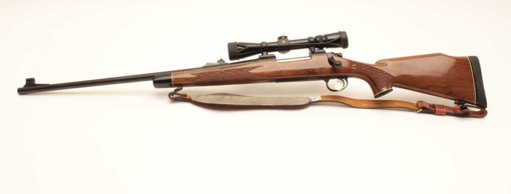 Left hand Remington Model 700 bolt action rifle, .338 Win. Mag. caliber, 25” barrel, blued finish, checkered wood stock, S/N C6448841, with leather sling and mounted with a Leupold Vari-X III 2.5 x 8 scope Lot Title displaying fine optics; the gun is also in overall fine condition with a fine bore, crisp action, sharp markings and fine wood stock. (Modern). Est.: $500-$1,000.