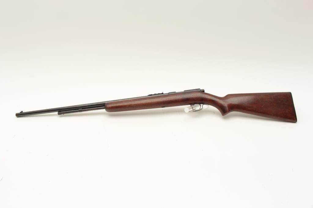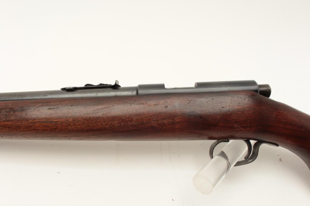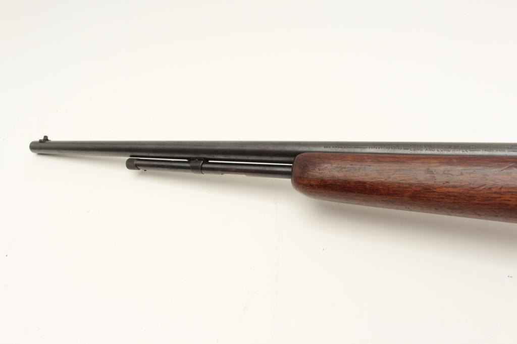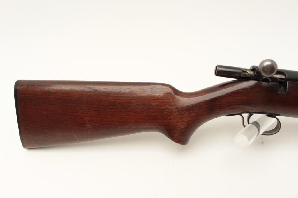 Winchester Model 72 bolt action rifle, .22 short, long and LR caliber, 25” barrel, blued finish, wood stock, no visible S/N, in overall very good + condition displaying the majority of its original blued finish, very Lot Title good bore, crisp action, sharp markings and very good wood stock. (Modern). Est.: $250-$500.